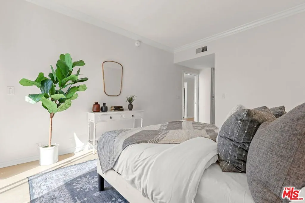 1164 Wellesley Ave #302 is a stunning, refreshed top-floor residence in a contemporary boutique building, ideally located in the heart of Brentwood. Positioned along picturesque, tree-lined Wellesley Avenue and surrounded by multi-million-dollar homes, this exceptional two-level unit blends modern sophistication with effortless California living. Bathed in generous natural sunlight, the home features soaring ceilings and an airy open floor plan that seamlessly connects the living and dining areas making it perfect for both everyday comfort and elevated entertaining. Arrive home to your very own sanctuary full of light with all of the touches you need including recessed lighting, fresh floors, fresh paint and a polished aesthetic throughout. The main living space is anchored by a stylish fireplace and enhanced by expansive windows that flood the home with light. The thoughtfully designed kitchen offers stainless-steel appliances, ample cabinetry, and a breakfast-bar that balances beauty and functionality for the culinary enthusiast. The spacious primary suite serves as a private retreat, complete with a walk-in closet and an ensuite bath with dual vanities. A well-appointed second bedroom completely separated upstairs with its own ensuite bath and large walk in closet provides flexibility for guests, can serve as a home office, or be an additional primary living space. What truly sets this residence apart is its two-level layout and full private rooftop patio and exceptional outdoor extension of the home. Perfect for entertaining, dining under the stars, or relaxing in the California sunshine, this expansive rooftop retreat offers privacy and sweeping treetop and city views rarely found in Brentwood condominiums. Additional highlights include ample interior storage and an in-unit laundry area accommodating a full-size washer and dryer. As a top-floor unit, you'll enjoy maximum privacy and tranquility. The property is nestled moments from Brentwood Village, Wilshire Boulevard, the renowned weekly Farmers Market, Westwood, UCLA, Santa Monica, and the beach. This residence truly places you in the mix of premier dining, shopping, and entertainment right outside of your doorstep.
