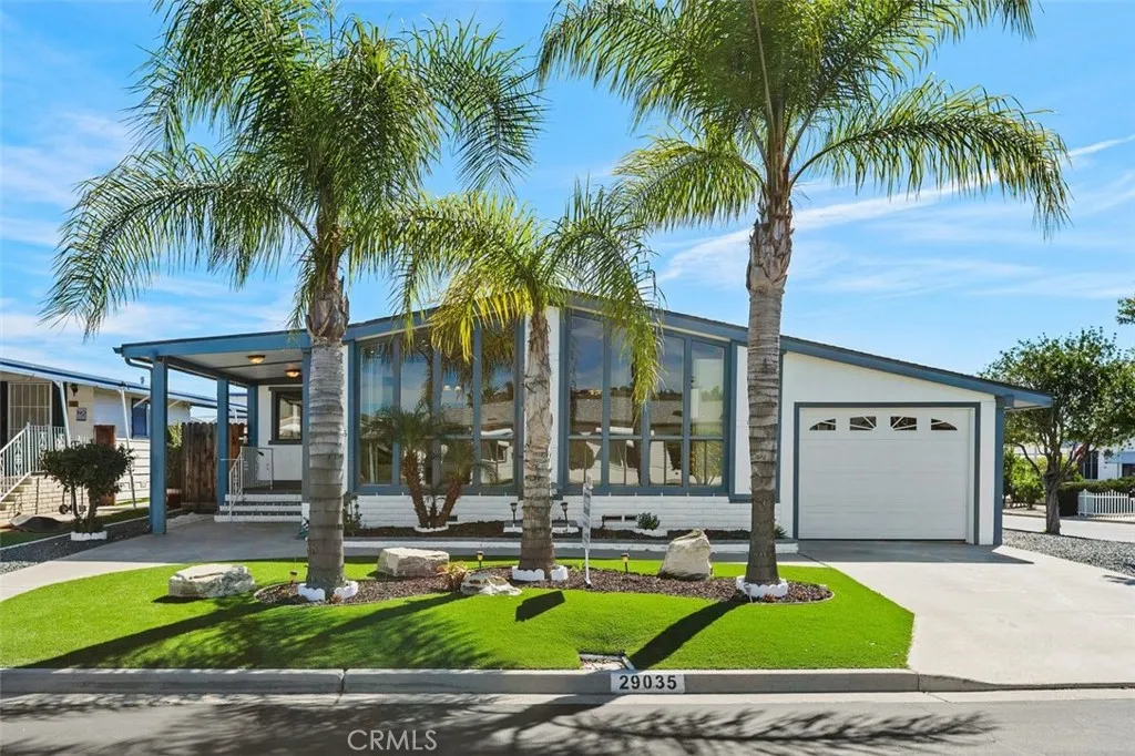 Welcome to Golf Knolls in beautiful Murrieta, CA! You own the land in this park 55+ park. That's right - no space rent! Gorgeous private corner lot with 2 driveways, enclosed 2 car drive through carport plus a single car garage! Recently landscaped front and side yard with low maintenance turf and rock. Added solar panels save thousands on electric bill, payment is $107 per month. VA Loan can be assumed, balance is $205,000 and interest rate is 2.75%!!! You don't have to be a Veteran to assume. Entire home was completely remodeled in 2012 and has been very lightly used since then as a writing studio by the Author/Owner. 2 bedrooms plus a den or office. TONS of storage as the side yard area opposite the carport was also enclosed. Several skylights have been added creating abundant natural light. And there is a storage shed/workshop behind the single car garage as well. Enjoy fantastic amenities and the HOA is only $95 per month.