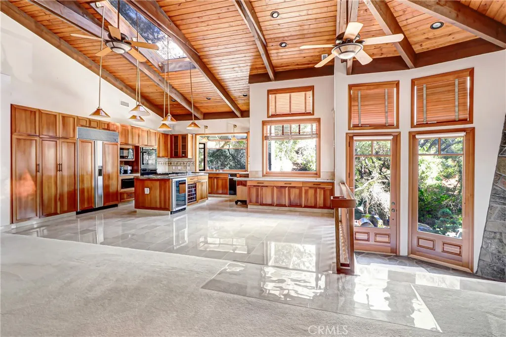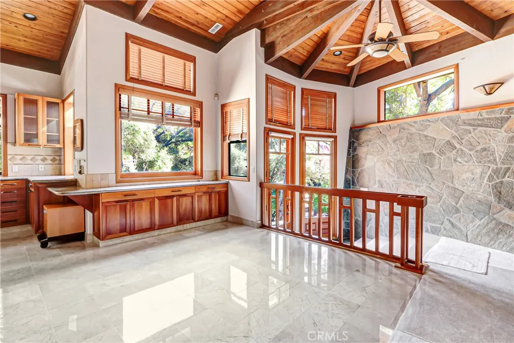 Nestled along scenic Webb Canyon Road, this extraordinary forest chalet offers a rare opportunity to live fully immersed in nature. Surrounded by majestic oak trees and accompanied by the soothing sounds of birds, rustling wildlife, and a seasonal bubbling brook just out front, this one-of-a-kind retreat delivers unmatched tranquility and privacy. The striking exterior showcases bold river rock construction, blending beautifully with its natural surroundings. Inside, soaring ceilings, expansive windows, and skylights flood the home with natural light and frame breathtaking forest views from nearly every angle. Warm redwood cabinetry and custom staircases add character and craftsmanship throughout. The expansive primary suite serves as a true sanctuary, featuring a generous en-suite bath complete with an oversized soaking Jacuzzi tub, a large glass-brick accented shower, and elegant finishes. All bathrooms are tastefully appointed with quality tile and fixtures. The lower level offers two additional bedrooms and a full bath with both interior and exterior access—ideal for guests, multigenerational living, or flexible living arrangements. While there is no garage, the property provides dedicated storage space and ample parking in front of the home, offering convenience for residents and guests alike. This property offers exceptional privacy and serenity, but it is important to note the unique characteristics of the location. Situated in a high fire zone and subject to flooding, with a narrow road that can be dark at night and occasional wildlife sightings, including nearby bears, this setting is not suited for everyone. For nature lovers, privacy seekers, and those who appreciate the beauty of an unspoiled environment, this home is a rare and remarkable find. The photos simply cannot capture the full experience—this is a property you truly must see to believe.