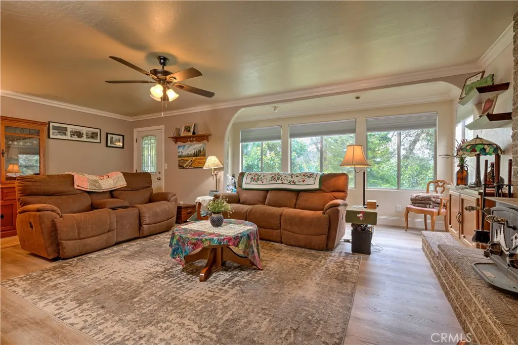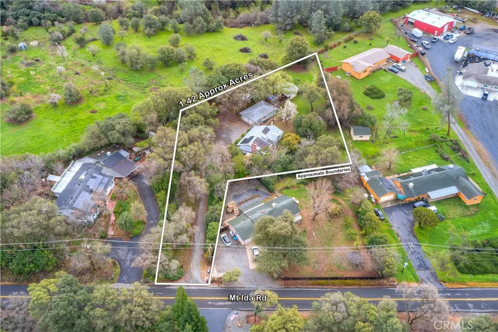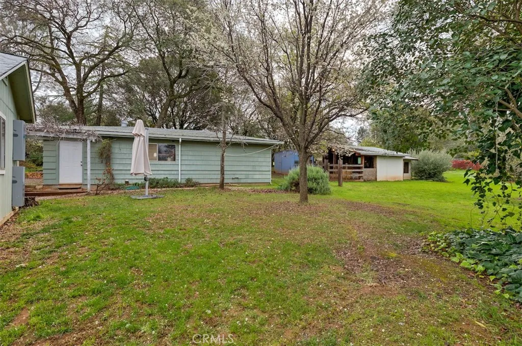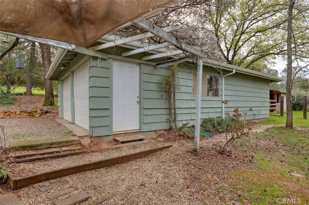 Charming country retreat offering privacy, gardens, and patios, in a lovely setting. The large garage/workshop contains the laundry and a separate room for projects. Plenty of space for RV parking. and a storage shed. The rear property once housed sheep, horses, goats and chickens in outbuildings. Lots of space for vegetable gardens. The area is known for its citrus farms and winery. The long driveway offers parking for several guests. When you discover this peaceul retreat, you will want to grab a book and curl up next to the fireplace. Arched doorways and crown moulding throughout create old world charm. New paint, ceiling fans, stove, flooring, screen doors and solar shades are recent additions. Lucious, established plants decorate the gardens. Ophir Elementary School is close by. Don't miss the custom tile work in the kitchen and bath. The primary suite offers a private desk area. Notice the new roof with a solar panel lease which can be assumed by the new owner. It's only a few miles to town. Located up a private driveway off the busy street makes it a great place for kids to play. This is truly a country jewel and one of a kind NEED A SEPARATE OFFICE SPACE OR ART STUDIO ????? Look no further than the 13' X 22" room in the back of the Large Garage !!! Plumbing and electrical are there. Door to the outside and window looking into the back yard. DRUM PRACTICE ??? YOGA???