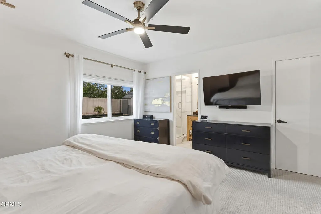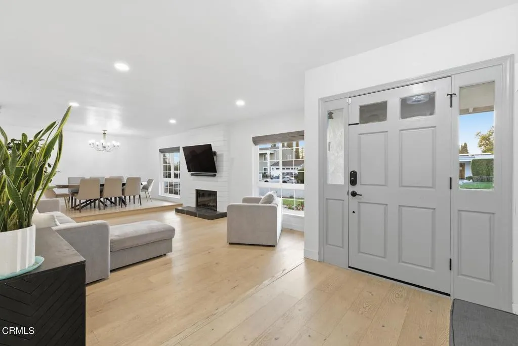 Quintessential indoor-outdoor California living meets modern upgrades in this fully remodeled corner-lot pool home with solar panels, dedicated RV parking, a custom fire pit lounge, private putting green, and seamless open-concept interiors.Inside, you'll find a bright open-concept floor plan designed for today's lifestyle. Wide-plank flooring, expansive windows, recessed lighting, and a statement shiplap fireplace create a clean, contemporary feel while maintaining warmth and functionality. The seamless flow between the living room, dining area, and kitchen makes this home ideal for everyday living and entertaining.The updated kitchen features white shaker cabinets, quartz countertops, textured subway tile backsplash, stainless steel appliances, stainless steel single-basin sink, built-in microwave, floating wood shelves, and generous counter space with abundant storage. The layout is perfect for hosting, meal prep, or gathering with friends and family.The spacious primary suite offers a private retreat with a fully renovated en-suite bath showcasing designer tile, custom vanity, and modern fixtures. Step outside to a resort-style backyard designed for year-round California living. Enjoy a sparkling pool and spa, custom gas fire pit lounge area, covered patio with outdoor dining space, mounted TV for game days, built-in BBQ area, low-maintenance artificial turf putting green, and a dedicated play structure zone. This backyard is ideal for entertaining, relaxing, and multigenerational living.