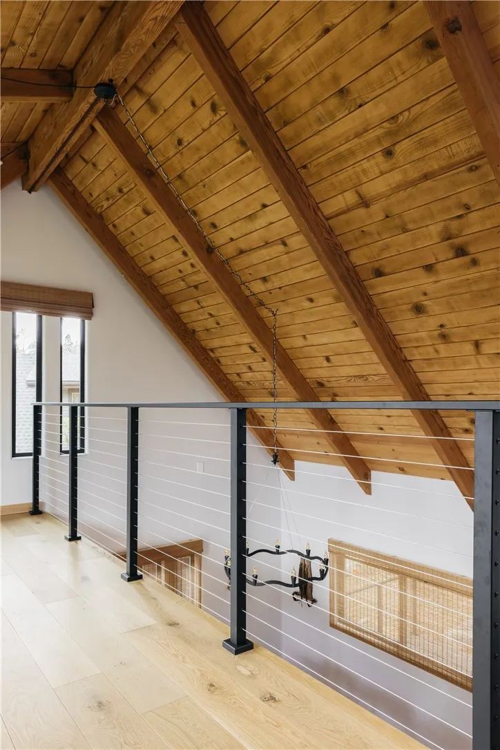 A rare blend of modern elegance and natural serenity, this beautifully reimagined contemporary cottage offers refined living tucked beneath a canopy of trees with peaceful lake views. From the moment you arrive, a natural rock and stone pathway leads from the level parking area to the front entry, creating a warm and welcoming approach that blends seamlessly with the surrounding landscape. This 3-bedroom, 3-bath home with a spacious game room and loft is crowned with a durable metal roof and thoughtfully positioned for both privacy and ease. A charming stone walkway guides you to the inviting front deck, setting the stage for the craftsmanship and care found throughout. Inside, every finish has been intentionally curated — from rich wood flooring and designer stone and tile accents to vaulted, beamed ceilings that create an airy yet inviting atmosphere. Welcoming lake views and lush treetop vistas filter through abundant windows, filling the home with natural light and tranquility. The open-concept main level is warm, refined, and effortlessly functional. Expansive french patio doors extend the living space outdoors to a spectacular deck, where panoramic treetop and lake views create a true sanctuary in the trees. The seamless indoor-outdoor flow makes this home ideal for both intimate evenings and lively gatherings. Each level features its own bedroom, offering privacy and flexibility for guests or multi-generational living. Upstairs, a private bedroom and bath are complemented by a generous loft — the perfect space for reading, relaxing, or simply enjoying the peaceful scenery.The lower level enhances the home’s versatility with a spacious game room complete with built-in cabinetry, a half bath, and an oversized laundry closet. An additional bunk room and direct exterior access make this level ideal for entertaining, recreation, or hosting overnight guests, with room for expanded outdoor enjoyment. The kitchen showcases updated appliances, including a distinctive retro style refrigerator and freezer that add both character and functionality. Contemporary cable railings framing the staircase and loft serve as a striking architectural feature, enhancing the home’s clean lines and elevated aesthetic. More than a cottage, this is a thoughtfully designed retreat where timeless natural elements and modern sophistication come together in perfect harmony. This home is located in Arrowhead Woods and has Lake Rights