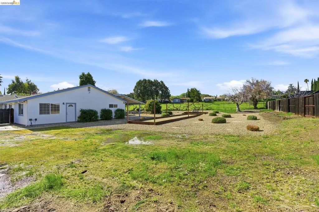 Set on an expansive half-acre with no rear neighbors, this one-of-a-kind single-story property offers space, flexibility, and privacy that’s hard to find in Antioch. This single-story home features 4 bedrooms, 3 bathrooms, and 2,289 sq ft of thoughtfully designed living space—including a fully attached ADU perfect for multigenerational living or guests done with permits The ADU offers its own bedroom with backyard access, living room, kitchenette, full bathroom, and a huge walk-in closet. Inside, you’ll love the natural light, beautiful hardwood flooring, tile kitchen, and plush carpeted bedrooms. The primary suite includes backyard access and a spacious walk-in closet with added storage. The kitchen is truly special with a skylight, breakfast bar, stainless steel appliances, oak cabinetry, sleek countertops, a beautifully designed backsplash, recessed lighting, a garden/greenhouse window overlooking the yard, and a pantry with a stunning barn door accent. Outside, enjoy a low-maintenance front yard, RV parking, a massive backyard with no rear neighbors, two large barn storage sheds, two expansive side yards, a brick built-in BBQ, bocce ball setup—plus room for another detached ADU. Close to trails, parks, schools, and freeway access, this home is truly a breath of fresh air.
