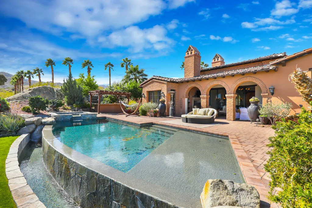 Stunning ridge line home with fabulous valley views in one of the Deserts hidden gems, Villas of Mirada, in Rancho Mirage. You are in the heart of the desert with easy access to all of the amazing venues here.Features an open floor plan and outdoor living space that flows seamlessly together, creating the perfect desert lifestyle.A kitchen for the serious cook features Wolf, SubZero and Thermador appliances and a large island with plenty of seating with adjacent formal dining space. Spacious primary suite has down valley views and a luxurious bathroom. 2 ensuite bedrooms are in the main house. A casita with private entrance is off the entry courtyard. Enjoy outdoor living with a covered patio featuring a fireplace , valley views, an infinity saltwater pool and spa, covered BBQ and a elevated spot perfect for yoga or meditation. Tranquil patios off the dining room and one bedroom and a entry courtyard provide peaceful areas to relax. Did I mention Views? A community center features a Gym and a pool and homeowners enjoy privileges and discounts at the near by Ritz Carlton-Rancho Mirage. Virtual tour and floorplan available at www.Homes.com