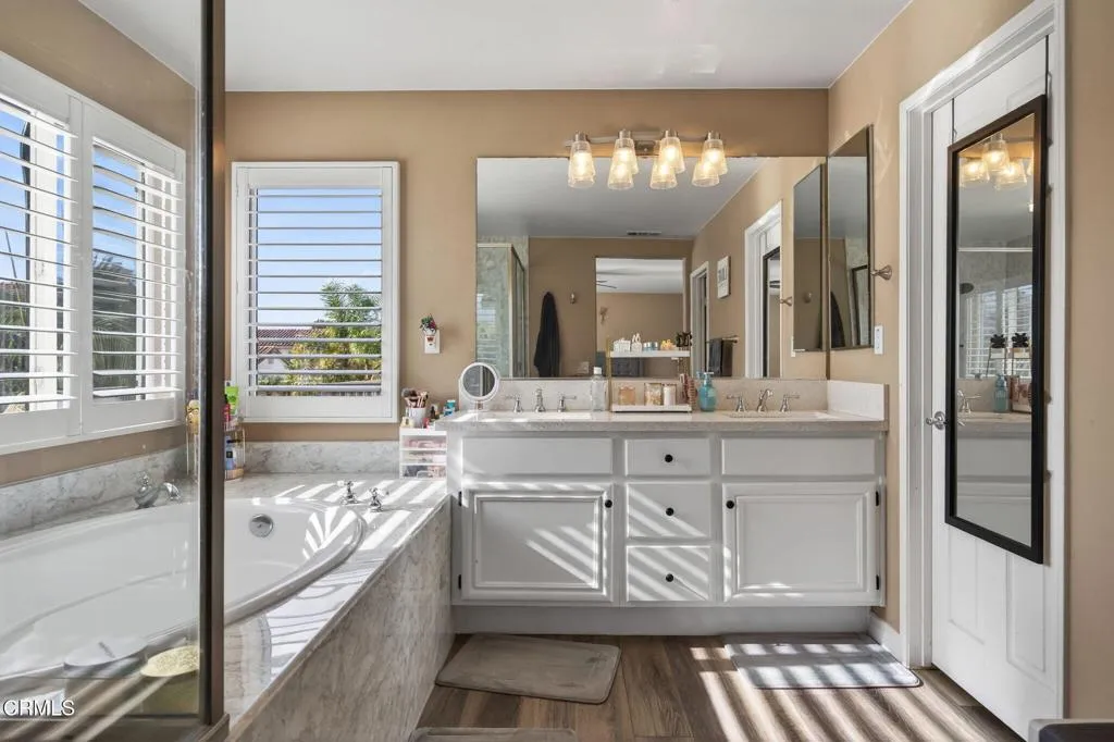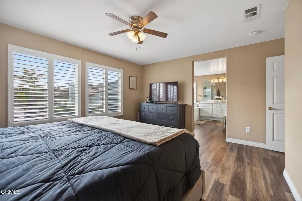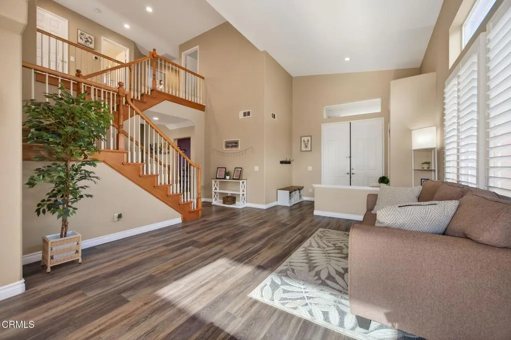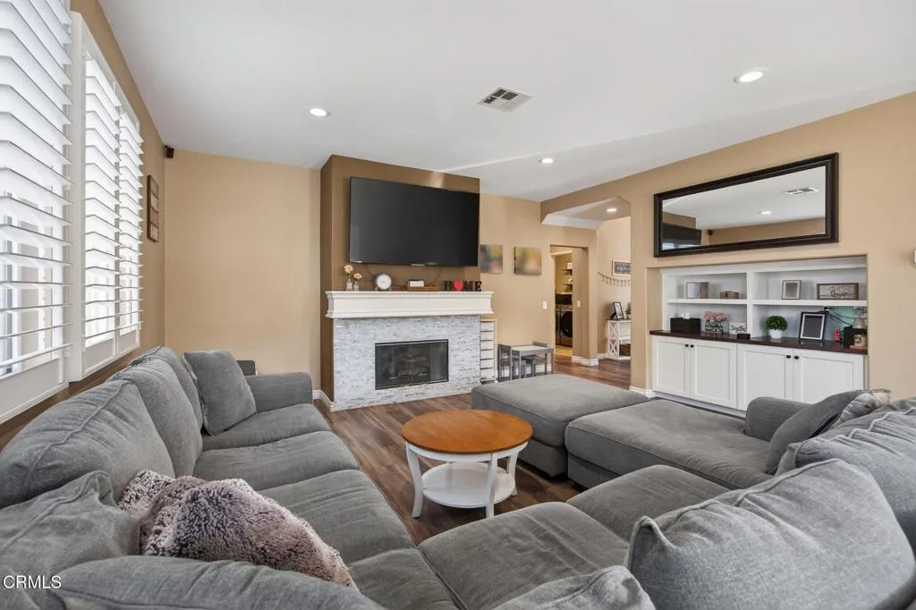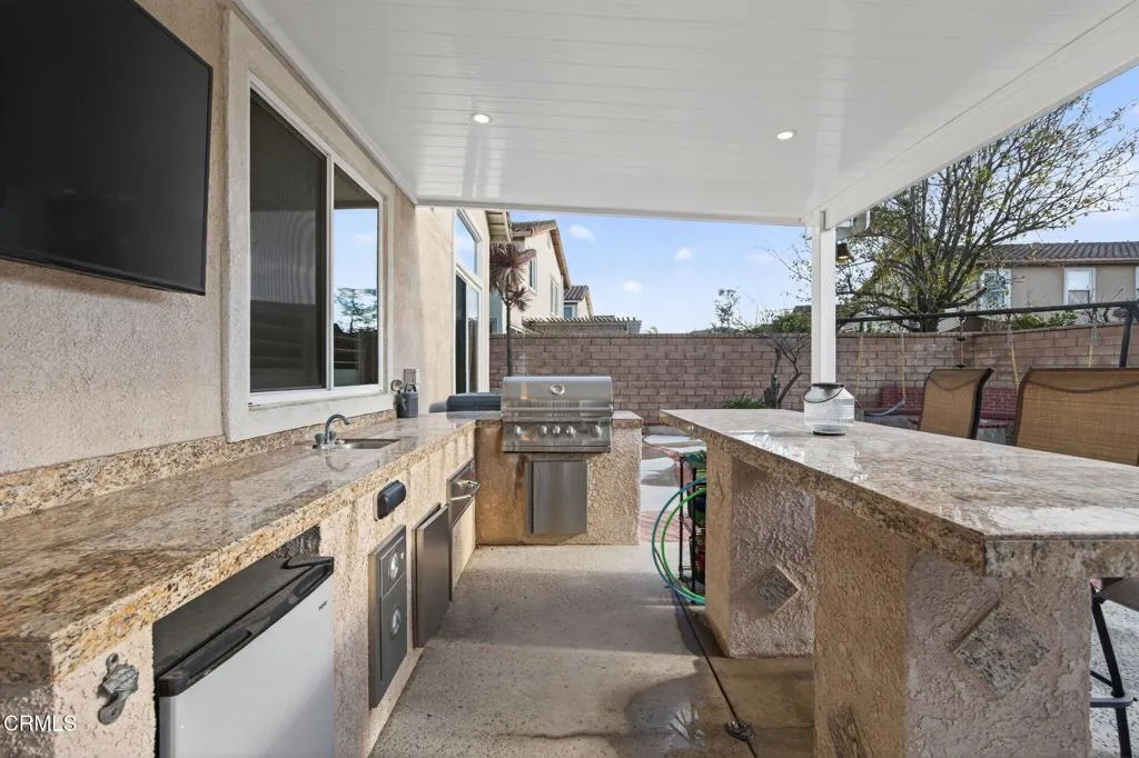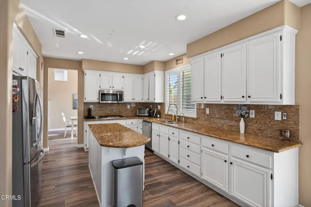 Welcome home! This beautifully updated 4-bedroom residence, featuring a downstairs office/playroom or optional 5th bedroom, is ideally located in Camarillo's highly desirable Mission Oaks neighborhood--just steps from one of the area's top-rated elementary schools.Upon entry, you'll immediately notice the updated flooring, freshly painted interior, recessed lighting, and an open-concept layout filled with natural light streaming through the formal living and dining areas. The kitchen is well-appointed with granite countertops, light cabinetry, stainless steel appliances, a large pantry, and modern finishes throughout. Adjacent to the kitchen is a secondary dining area and a spacious family room with built-in shelving, making it perfect for both everyday living and entertaining.Sliding glass doors open to a private backyard designed for enjoyment and gatherings, complete with a built-in BBQ, a fire pit with seating area, and ample space to create additional outdoor amenities.Upstairs, you'll find four generously sized bedrooms with ample hallway storage. The primary suite features an updated bathroom with a new shower enclosure being installed this week, a soaking tub, separate marble shower, dual sinks, and a large walk-in closet. A secondary bathroom with dual sinks services the remaining bedrooms.This spacious San Simeon model also offers a large three-car garage, additional parking, possible RV access, and a leased solar system to help offset energy costs. Offering the perfect blend of functionality, style, and location, this is a must-see home in one of Camarillo's most sought-after communities.
