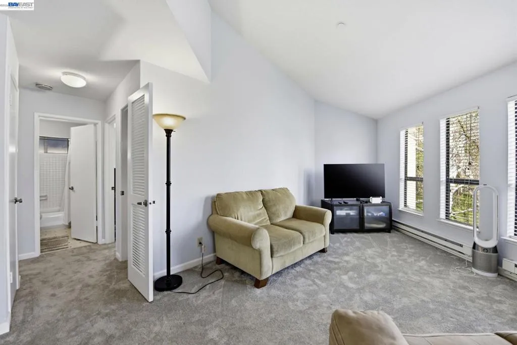 (Open Saturday and Sunday 1-4) This bright and inviting 2 bedroom 1 bathroom condo in the highly sought after Fremont Villas. The top level unit boast high ceilings and ample natural light. recently completed new carpet, and paint. There is plenty of parking for all your guests and a carport under the building. The HOA offers a sparking pool and a clubhouse, meticulously maintained green areas, and water, sewer, and garbage services. It is centrally located and it is a quick walk to BART, to parks, Lake Elizabeth, grocery stores, and the Fremont Hub