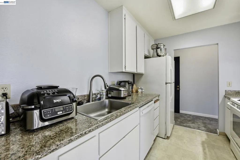 This bright and inviting 2 bedroom 1 bathroom condo in the highly sought after Fremont Villas. The top level unit boast high ceilings and ample natural light. recently completed new carpet, and paint. There is plenty of parking for all your guests and a carport under the building. The HOA offers a sparking pool and a clubhouse, meticulously maintained green areas, and water, sewer, and garbage services. It is centrally located and it is a quick walk to BART, to parks, Lake Elizabeth, grocery stores, and the Fremont Hub