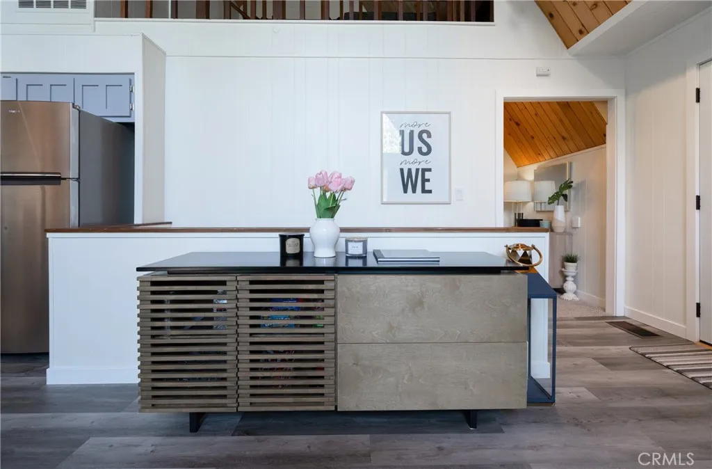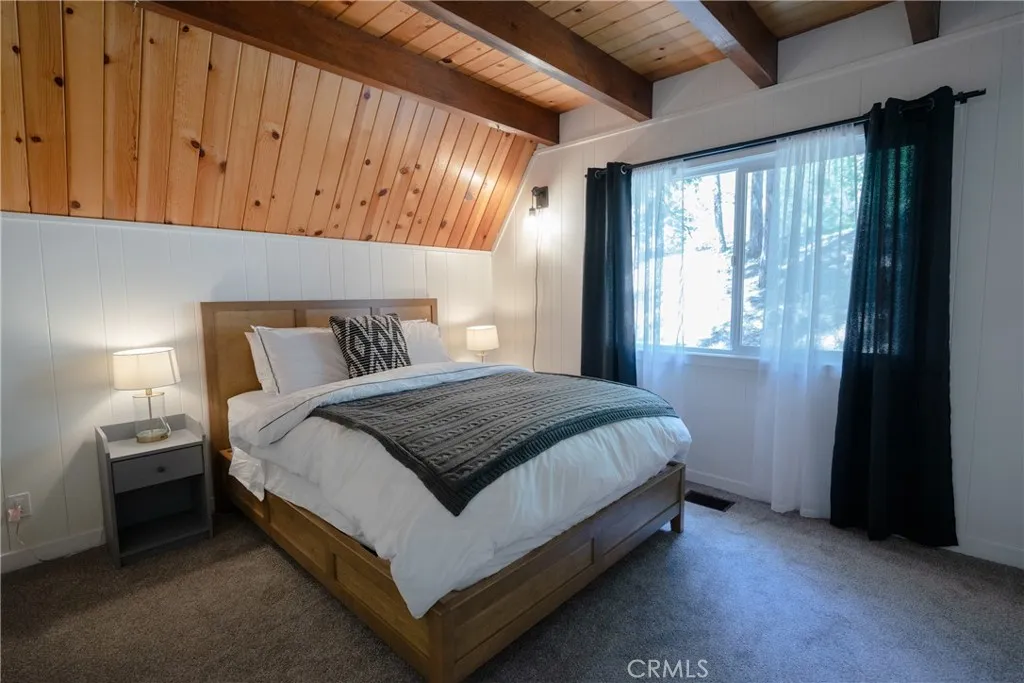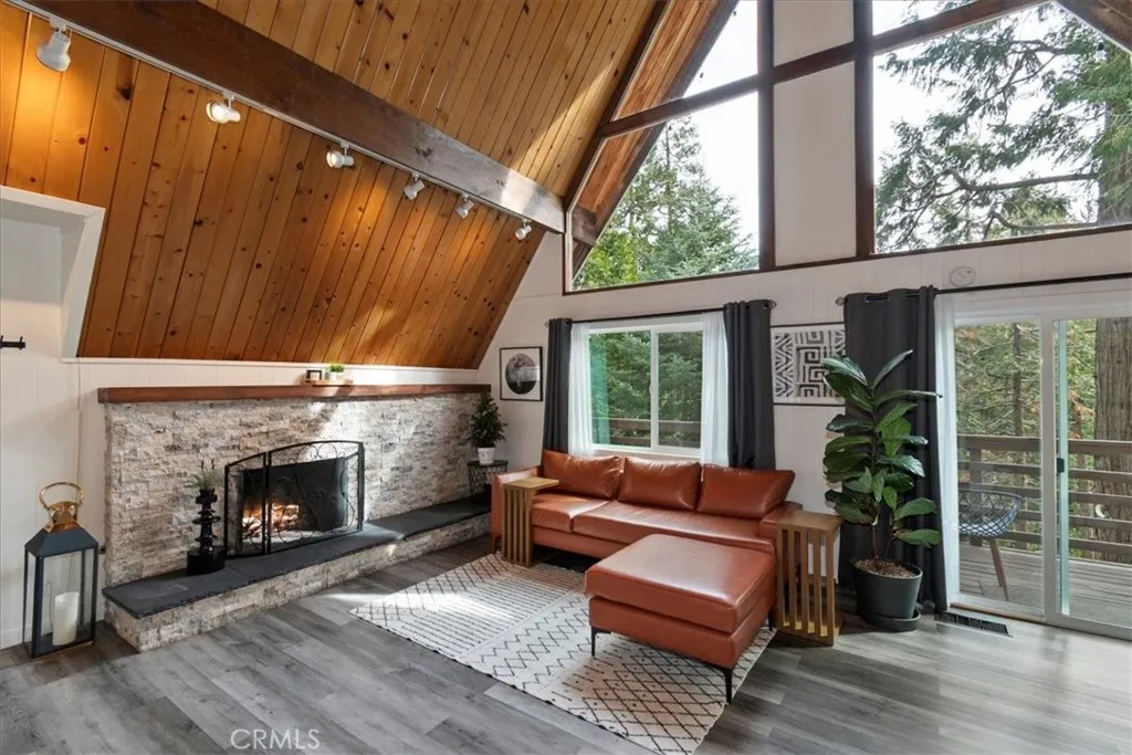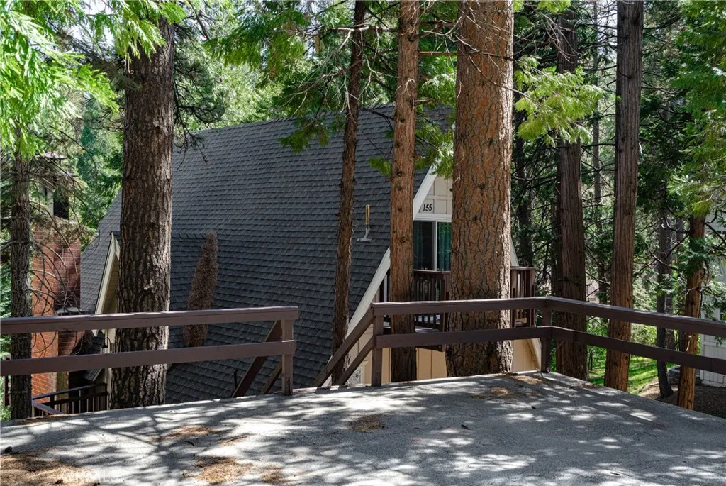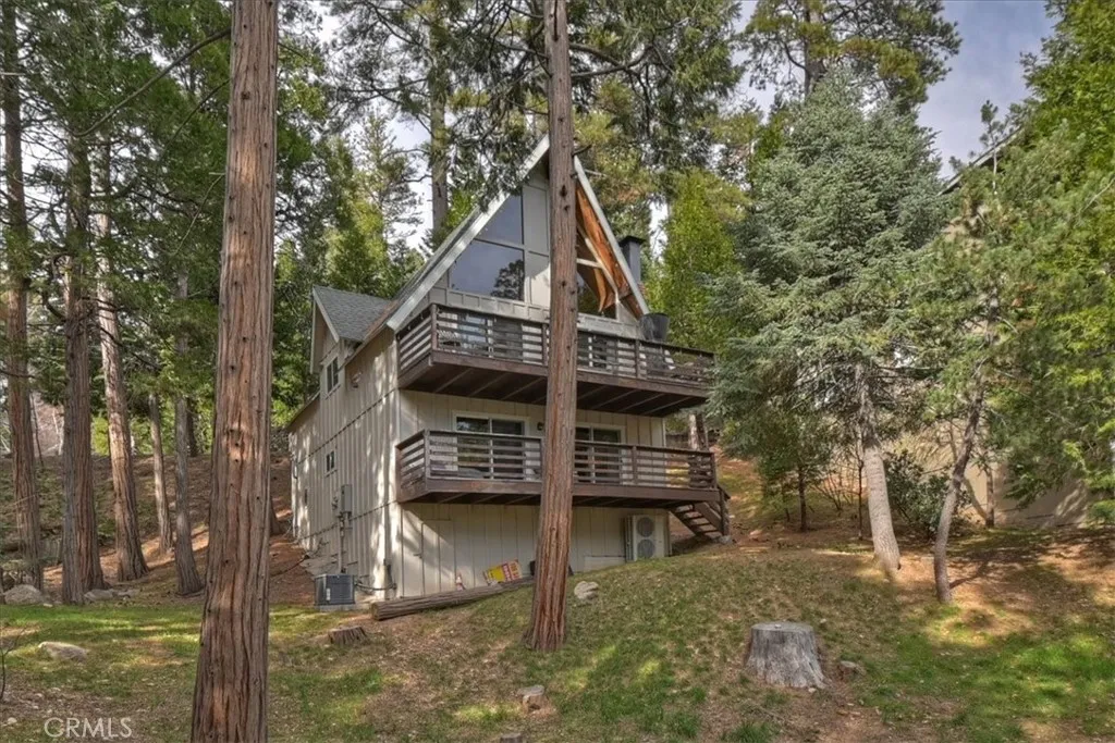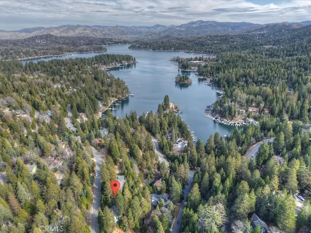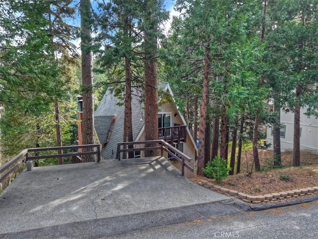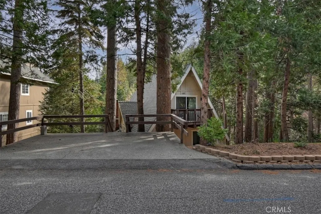 Step into the ultimate mountain lifestyle with this stunningly remodeled 1400 sq. ft. A-frame cabin. Nestled on a lush 1/4-acre forested lot, this 3-bedroom, 3-bathroom retreat perfectly balances modern luxury with classic alpine charm. ~ The Space: The heart of the home is a breathtaking, open-concept living room featuring soaring vaulted wood-beamed ceilings and floor-to-ceiling windows that invite the forest inside. The seamless flow leads you to a remodeled kitchen and out onto a spacious, lovely deck—perfect for morning coffee among the trees or evening stargazing. ~ Modern Upgrades: No detail was spared in the recent renovation. This home is truly move-in ready with ~ Climate Control: Brand new heater and A/C for year-round comfort. ~ Efficiency: Whole-house automatic generator & Newer dual-pane windows throughout. ~ Aesthetics: Fresh interior paint, stylish new flooring, and three fully remodeled, designer-inspired bathrooms. ~ Prime Location & Perks: Forget the mountain driving stress; this property sits on a plowed road with a coveted level parking pad. Enjoy the best of Lake Arrowhead living with a short, scenic walk to both the Lake and the Village. ~. Best of all, this home comes with Lake Rights, granting you exclusive access to the private, crystal-clear waters of Lake Arrowhead.