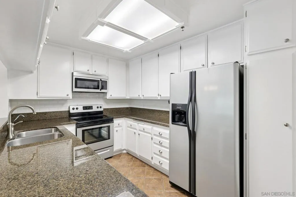 Located in the highly desirable community of Tierrasanta in San Diego, this beautifully updated 2-bedroom, 2-bathroom corner unit condo offers 1,118 sq ft of light-filled living space in a peaceful, park-like setting. Positioned to overlook a tranquil fountain and lush landscaping, this home provides exceptional privacy and a quiet atmosphere rarely found in condo living. Inside, you’ll find an updated kitchen with wine refrigerator and full-size refrigerator, fresh neutral paint, and modern easy-care flooring throughout. The spacious living room features a gas fireplace, creating a warm and inviting environment, while the functional layout includes optional IN UNIT LAUNDRY SPACE, a water filtration system, and additional patio storage. This home includes secure underground parking with assigned space, controlled access entry, and well-maintained common areas. The HOA delivers a truly resort-style, all-inclusive lifestyle, covering exterior building maintenance (including roofs, garages, and parking areas), landscaping, water, trash, recycling, gas for fireplaces, premium cable and high-speed internet (including HBO, Showtime, Cinemax, Disney, and streaming services), and 24-hour property management. Residents also enjoy access to a heated pool, spa, saunas, tennis and pickleball courts, BBQ areas, and multiple laundry facilities, along with an onsite maintenance technician and housekeeping services. Centrally located near shopping, dining, parks, hiking trails, and major freeways. Short drive to admiral Baker Golf course. Will sell fast!