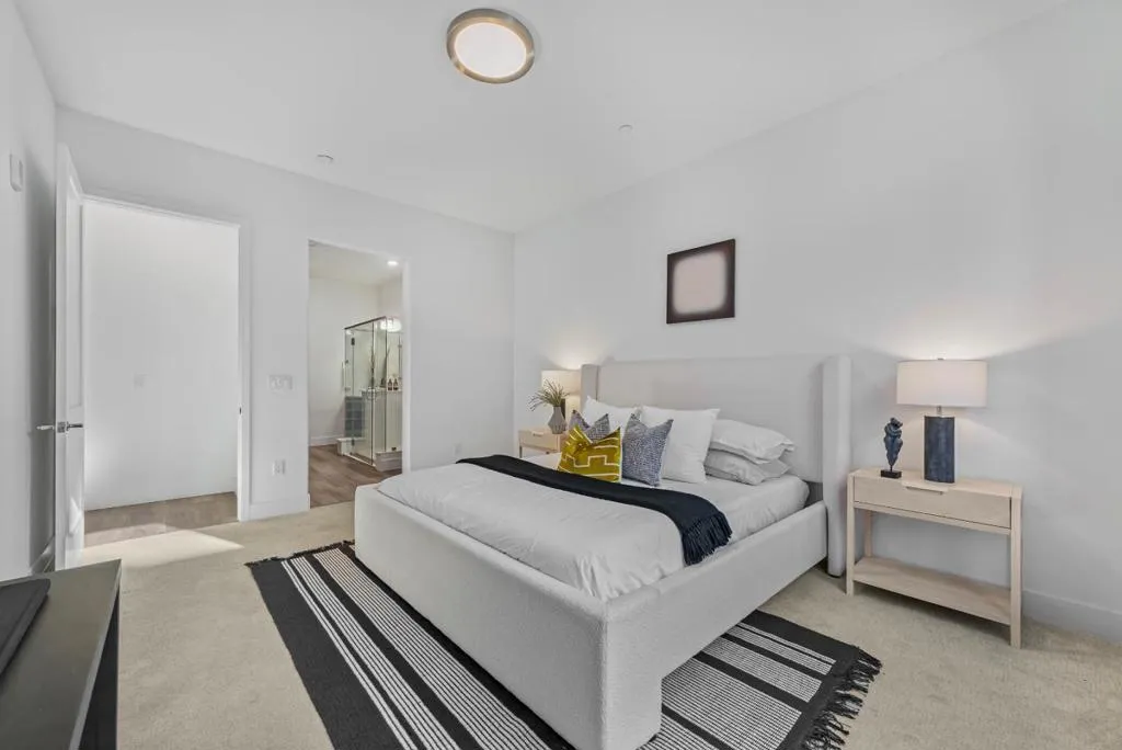 Exceptional value in Metro Crossing Luxury Urban Living in Fremont! Discover this stunning 2-beds, 2- baths condo with 1,725 sq. ft. of single-level living and soaring 10-ft ceilings. Built in 2021 by Toll Brothers, this home blends modern design with everyday comfort. The open floor plan extends to an oversized covered balcony perfect for indoor/outdoor living. The chefs kitchen boasts a massive quartz island with breakfast bar, ceiling-height cabinetry, quartz countertops with stone backsplash, stainless steel appliances, and large pantry. Both bedrooms are private suites at opposite ends of the home. The primary suite includes walk-in closet, dual sinks, and glass-enclosed shower. The equally spacious secondary suite has access to a generous hallway bath ideal for guests. Additional highlights: Private 2-car side- by-side garage with EV charging; In-unit laundry with washer/dryer hookups & cabinets; Gated building with elevator; Resort-style amenities; Clubhouse with event spaces, fitness center, lap pool, BBQ, landscaped common areas. Features a top-rated 10/10 elementary and 8/10 high school; Steps from Warm Springs BART, with easy access to I-680/880, major tech campuses, and shopping/dining. More than a condo this is modern, convenient, elevated living.