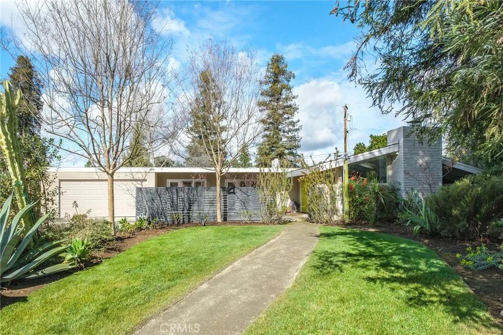 Welcome to 1264 W. Celeste Ave a stunning, light-filled Mid-Century Modern home nestled in one of Fresno's most sought-after neighborhoods. Offering 2,675 square feet, 4 bedrooms, and 2.75 baths, this exceptional property has been thoughtfully updated while preserving its timeless architectural charm. Beamed tongue-and-groove ceilings, skylights, and expansive walls of glass create a seamless connection between indoor and outdoor living. Step inside to a grand living space bathed in natural light, featuring oversized picture windows, a natural gas fireplace, and serene views in every direction. Designed to be the heart of the home, the spacious kitchen offers a breakfast bar, modern appliances, open shelving, a walk-in pantry, and original Old Fresno'' tile. From here, you'll enjoy a bird's-eye view of both living areas and the sparkling pool beyond. The dining room provides a warm and inviting setting to gather and unwind, complete with a wood-burning fireplace and built-in shelving.Retreat to the expansive primary suite, where a spa-like ambiance awaits. This private sanctuary features a beautifully updated bath, multiple closets, French doors leading to the backyard, and its own split-unit heating and cooling system for personalized comfort. Additional generously sized bedrooms offer ample closet space and picturesque views of the outdoor landscape. Outside, your California lifestyle comes to life. Take a refreshing dip in the large pool beneath mature shade trees, host dinners al fresco on the patio, or cultivate your farm-to-table dreams with a raised garden bed and fruit from multiple trees, including: orange, tangelo, grapefruit, meyer lemon, lime, guava, mandarinquat, loquat, nectarine, peach, pomegranate (landscape maps are included with the sale). Situated on a spacious lot in a premier Fresno location, this home perfectly captures the essence of relaxed, sophisticated California living.