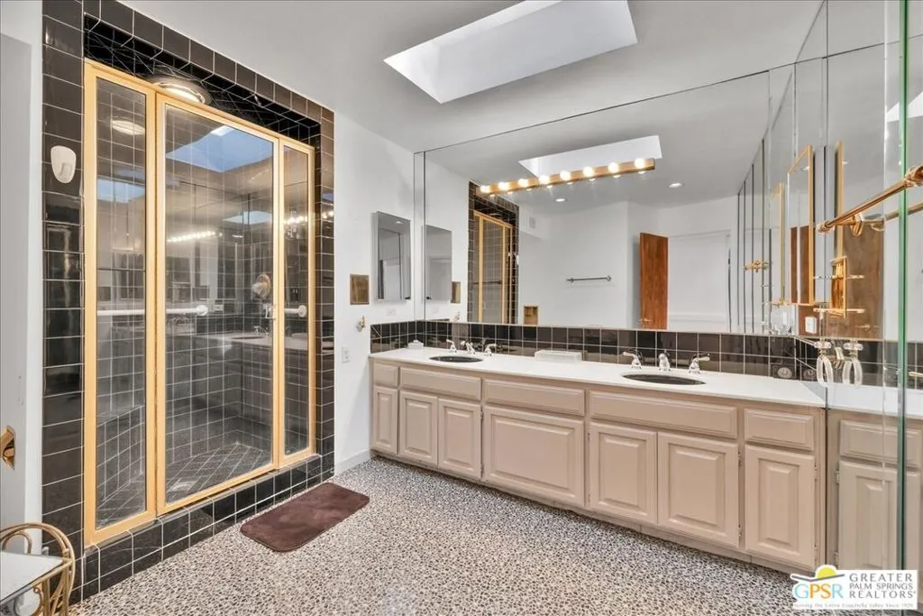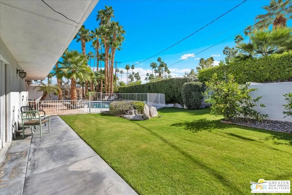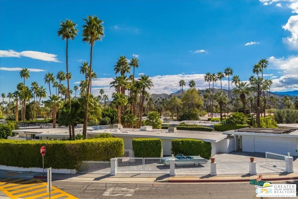 4BD/4.5BA (POTENTIAL 5BD) HISTORIC DEEPWELL ESTATE on FEE SIMPLE LAND. Representing a rare UNICORN OPPORTUNITY in SOUTH PALM SPRINGS, 1109 E. Mesquite spans a massive 20,909 SF PREMIER LOT in the prestigious DEEPWELL enclave. This 1957 MID-CENTURY MODERN pedigree blends expansive INTERIOR square footage with a FULLY DETACHED GUEST HOUSE, offering a PRIME canvas in a neighborhood where sales consistently reach the MULTI-MILLION-DOLLAR mark. The main residence is designed for the ultimate INDOOR-OUTDOOR LIFESTYLE, anchored by an OPEN-CONCEPT kitchen and living room with a dramatic DOUBLE-SIDED FIREPLACE opening directly to the SOUTH-FACING POOL and sweeping MOUNTAIN VIEWS. The PRIMARY RETREAT features direct SEAMLESS ACCESS to the pool and backyard, serving as a private sanctuary with a personal lounge, DEDICATED HOME OFFICE, and SPA-INSPIRED BATH. The FLEX SPACE: this cavernous bedroom with PRIVATE STREET ACCESS and an adjacent bath is ideal for a high-end studio, home gym, or NEXT-GEN GUEST SUITE, and can easily be CONVERTED INTO 2 BEDROOMS. On the opposite wing, find an additional GUEST SUITE with DIRECT POOL ACCESS and a full bath that doubles as a convenient POOL BATH with its own EXTERIOR ENTRANCE. The DETACHED GUEST RESIDENCE (CASITA) is a 1960s GLAMOUR time capsule featuring a PRIVATE ENTRANCE, DEDICATED DRIVEWAY, living/dining area, kitchen, and bedroom with MOUNTAIN VIEWS. A separate laundry closet ensures this AUTONOMOUS space offers the POTENTIAL to become an ULTRA-LUXURY CASITA for MAXIMUM PASSIVE INCOME. The oversized RESORT-STYLE OUTDOOR OASIS features a PREMIUM SOUTH-FACING orientation for MAXIMUM WINTER SUN, framed by INSPIRING MOUNTAIN VIEWS, the iconic KIDNEY-SHAPED MID-CENTURY MODERN POOL, and mature palms, offering PRIME VERSATILE SPACE to CURATE BESPOKE OUTDOOR LIVING with the POTENTIAL for a PROFESSIONAL OUTDOOR KITCHEN, AL FRESCO DINING, and PRIVATE POOL CABANAS. Rare for the area, this property boasts TWO SEPARATE 2-CAR GARAGES (4 covered spaces) plus a dedicated RV DRIVEWAY and a SECOND PRIVATE DRIVEWAY, ensuring the CASITA is completely INDEPENDENT. An EXPANSIVE PRIVATE FRONT YARD offers a sprawling secondary lawn with immense potential for a SECURE GATED COURTYARD or lush desert garden. Own a piece of HOLLYWOOD GOLDEN AGE history near KOFFI SOUTH and the ACE HOTEL, in a neighborhood curated by ARCHITECTURAL LEGENDS like WEXLER and KAPTUR, and celebrities such as WILLIAM HOLDEN and LORETTA YOUNG. As a cornerstone of MODERNISM WEEK, DEEPWELL remains the GOLD STANDARD of PALM SPRINGS living, and it is currently under the 20% NEIGHBORHOOD STR CAP. Buyer to verify local STR ORDINANCES. CONTACT THE LISTING AGENT TODAY FOR A PRIVATE TOUR AND/OR INFO.