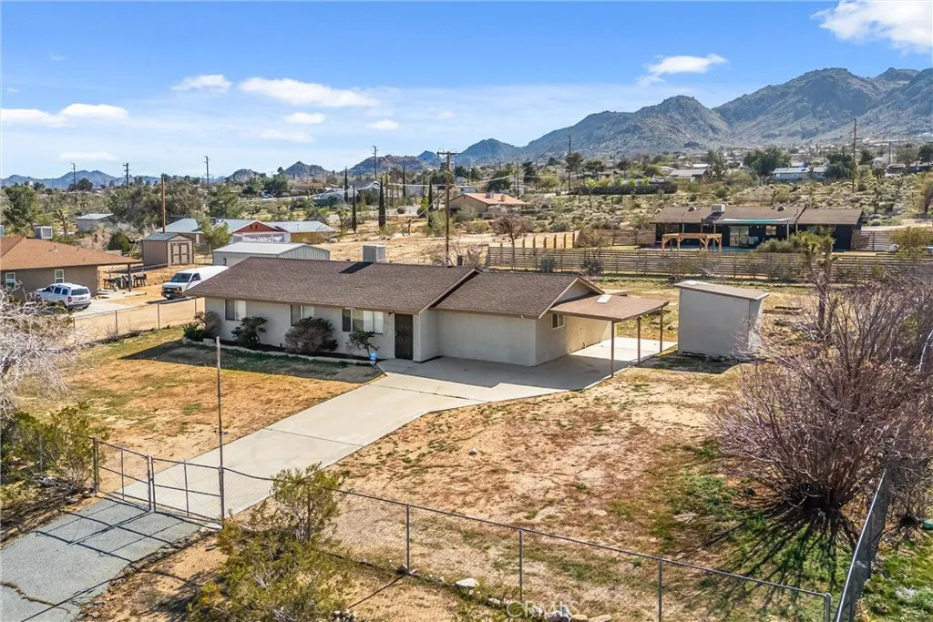 Welcome to this beautifully updated 4-bedroom, 3-bath home offering 1,898 sq.ft. of comfortable living space on nearly half an acre in the highly desirable Upper Friendly Hills neighborhood. Ideally located just minutes from Joshua Tree National Park and only 5 minutes from town, this property delivers the perfect blend of privacy, convenience, and desert charm. As you enter, you’re greeted by a nicely sized living room that flows seamlessly into the kitchen and breakfast nook, creating an open and inviting layout. The kitchen features granite countertops and brand-new stainless steel appliances, including a dishwasher, microwave, and gas range. Just off the kitchen is the first of two spacious en-suite bedrooms, complete with a ceiling fan and an updated bathroom featuring a tiled walk-in shower, plus a convenient laundry area with extra storage. On the opposite side of the home, you’ll find three additional bedrooms, two of which offer ceiling fans, recessed lighting, and generous space. These bedrooms share a centrally located full bathroom with a shower/tub combination. The second en-suite bedroom includes its own updated bath with a tiled walk-in shower, granite vanity, and modern finishes. Recent upgrades throughout include new laminate wood flooring, fresh neutral interior paint, recessed lighting in every room, updated bathrooms, and new stainless steel appliances. Outside, the expansive fully fenced backyard offers endless possibilities—whether you envision entertaining, gardening, adding outdoor amenities, or simply enjoying the open desert space. A covered carport and spacious storage shed add even more functionality. Located close to Friendly Hills Park, downtown shopping and restaurants, and the nearby National Park entrance, this move-in-ready home is a rare opportunity to enjoy space, comfort, and the best of Joshua Tree living.