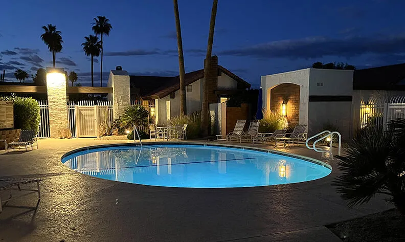 Absolutely Flawless Condominium Home in South Palm Springs... An exceptional investment opportunity, ideal as a second home or a luxury seasonal rental. Completely reimagined with relentless attention to detail, this property is sophisticated and visually stunning. This unit feels like a brand new home and is located well away from the road in a secluded location near the pool, in the beautiful Canyon Sands development with its 7 pools & spas and tennis courts. Step inside and be dazzled by a mirrored wall reflecting the natural light from brand new, floor to ceiling Milgard windows and sliders. It feels like a single family home with no common walls. Remodeled floor to ceiling, the floors are all chic 24''x24'' tiles and the ceilings have all been raised. The bright and sunny living room opens directly to a beautifully landscaped private patio for indoor/outdoor living. The patio is also accessed from the spotless fully finished 2 car garage for added flexibility. The all new designer kitchen will inspire your inner chef and the tiled bathrooms are magazine fabulous. The south Palm Springs location has everything you need within minutes: Trader Joe's, Target, Vons and the iconic Parker Hotel. Canyon Sands has an on-site HOA with a reputation for excellence. HOA dues are $665/month (includes water, trash, cable & internet) and the land lease until 2061 is $134/month. Seller Motivated!