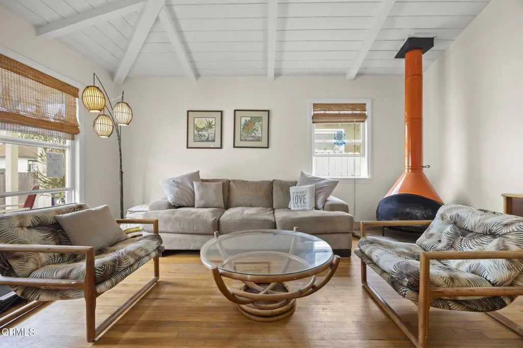This dreamy beach cottage comes fully furnished, perfect for part-time or full-time living or as a very lucrative investment property.This 2 bedroom, 1 Bath has all the charm and character you could ever want in an inviting beach home. This gorgeous cottage features beautiful oak hardwood floors, a spacious upgraded kitchen and a lovely Malm fireplace adding to the cozy feel of this home.The bright and airy living room features vaulted ceilings, bigger double pane windows and plenty of natural light.The modern, upgraded kitchen features custom maple cabinets, granite counters, and very unique tiled floors. The spacious kitchen will take you by surprise with its open layout, perfect for hosting dinners with family and friends.While most of the homes in this highly sought after area do not feature backyard space, this beach beauty does! The backyard is an oasis of private, lush greenery, with plenty of room to entertain friends and enjoy everything beach living has to offer. Outdoor shower is plumbed just needing a few fixtures.Come see this cozy beach oasis and fall in love with everything Oxnard coastal living has to offer.
