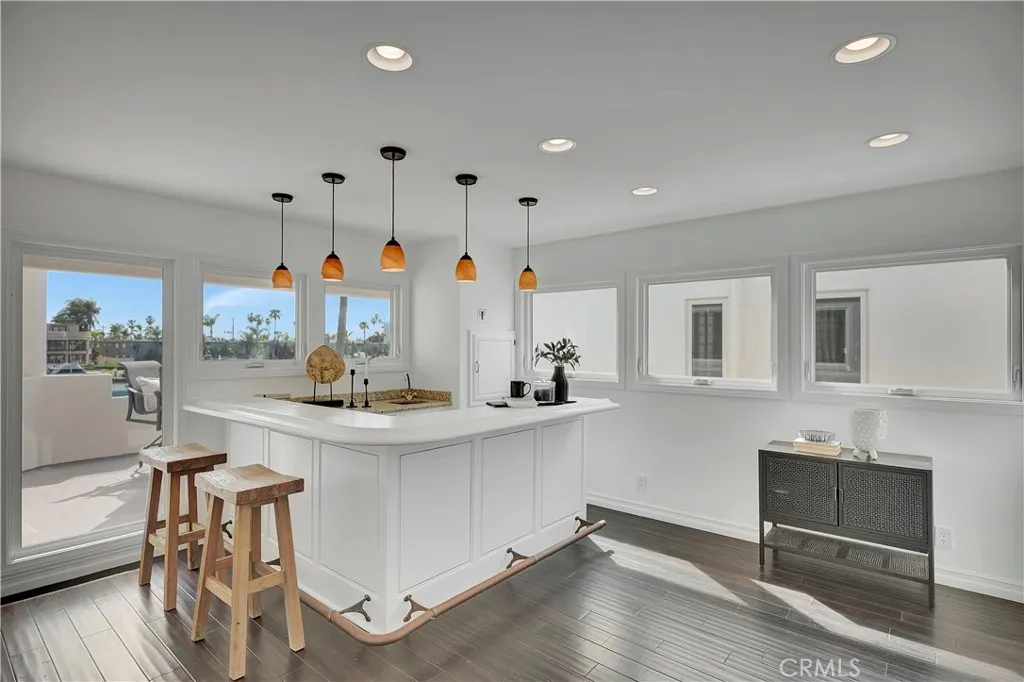 265 Bay Shore | Belmont Park is a RARE ONE … Exceptional waterfront living with sweeping 360 views of the bay, ocean, Catalina and snow-capped mountains, including a private oversized two-sided dock accommodating a large yacht and additional watercraft, plus HUGE 4-car garage and additional parking. A dramatic two-story wall of glass showcases the waterway, filling the home with natural light.____This multi-generational residence offers 5 en-suite bedrooms, including a studio suite with private entrance, kitchenette, bath, deck, and dedicated garage—ideal for guests or extended family. Open-concept living features an island kitchen with abundant seating and storage, flowing to dining and living areas overlooking a vibrant fish sanctuary. A loft-style family room with coffee bar and balcony enhances the flexible layout_____Enjoy 180° water views from multiple balconies, a playground-sized second-level deck, attached 4-car garage, and additional exterior parking— ALL RARE BEACH CONVENIENCES.____Upgrades include central HVAC, owned solar with battery backup, updated baths, custom closets, windows, plumbing, and electrical systems. Prime location near beaches, shops, dining, top-rated schools, and cherished community events. MUST SEE!