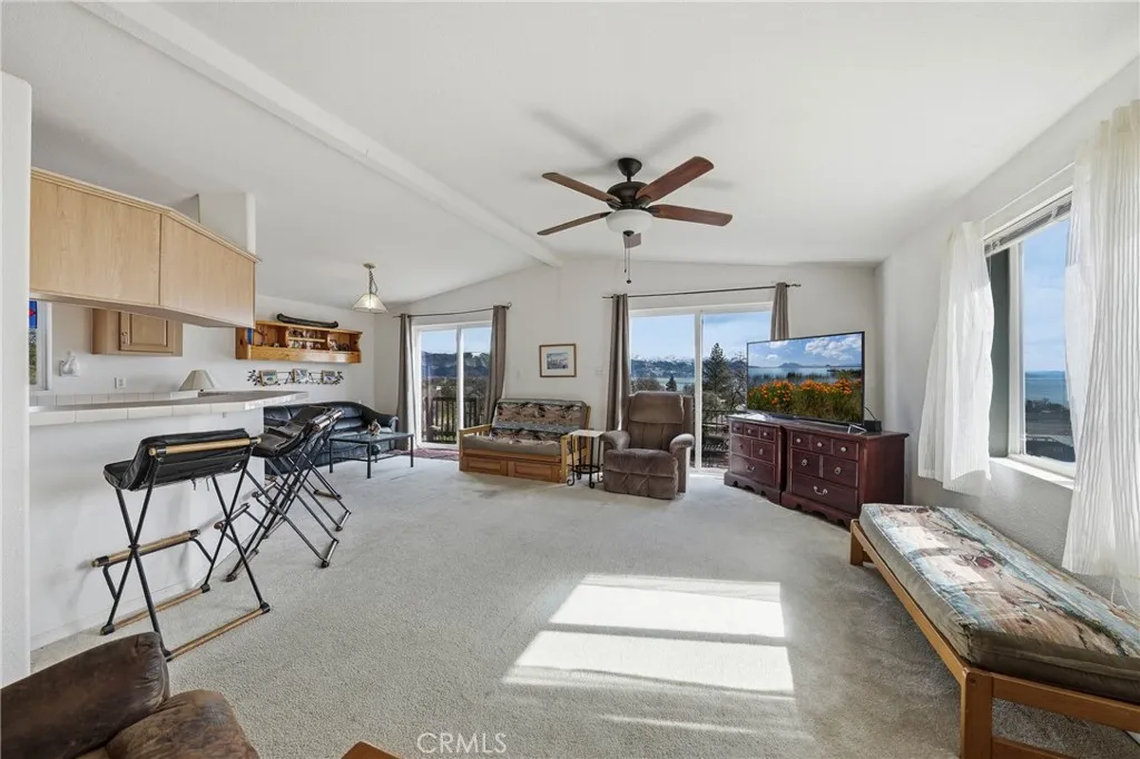 Lake view home with lake access and panoramic views in North Lakeport. Enjoy unobstructed views of Clear Lake and Mt. Konocti from the living room and large deck, offering a sense of privacy perched above it all. This 2002 manufactured home is designed for a low maintenance lifestyle and has been enjoyed as a vacation home by only one family since it was built. It features a light filled, open layout with the kitchen and living room positioned to capture the lake views, along with a breakfast bar ideal for everyday living and entertaining. A separate formal dining room offers flexibility and could easily be converted into an office, guest room, or additional living space. The primary bedroom is generously sized with two large closets. The walk-in closet also has access from the bathroom. Primary bathroom features additional deep storage cabinets. The home also includes a dedicated laundry room, central heat and air, and is located in the quiet, desirable Walnut Beach neighborhood. The annual membership fee of $174 to the Walnut Beach Marina Association includes access to the marina, boat launch, ramp, dock, picnic area and beach rights, all just minutes from the property. The home also comes with a boat and trailer, making it easy to start enjoying lake life immediately. Conveniently located close to the lake, shopping, and restaurants, this property offers an excellent opportunity for peaceful lake living with exceptional views. Some photos have been digitally modified.