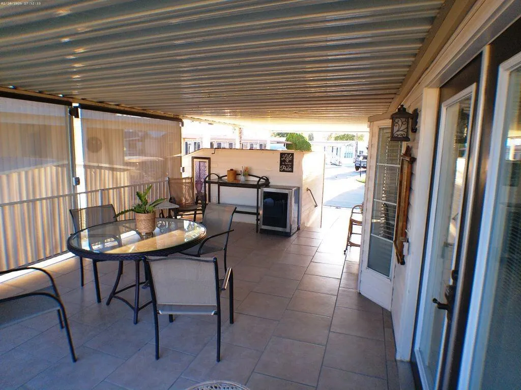 This 1991 Fleetwood has been updated over the years has offers a semi-private deck with a community gazebo behind on the green belt. It has a W/d in shed, tiled deck area, TV's, Interior & exterior furniture and is Turnkey. Located very close to Club House 1.