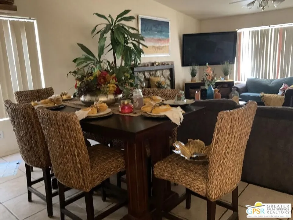 Come see this well maintained family home that has the perfect floor plan for a four bedroom two bath home the guest bathroom has nice extended stone counter top with two sinks and a tub shower and don't forget a over sized master bedroom that has views of the San Jacinto mountains the master bathroom has a large walk-in shower. This home is spacious and it has good size bedrooms with a large living room that has a custom decorated fire place and perfect size dining room for special occasion and entertainment. The guest sized bedrooms and a great located in a quite family neighborhood call to day to set your appointment.