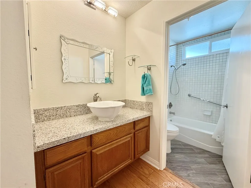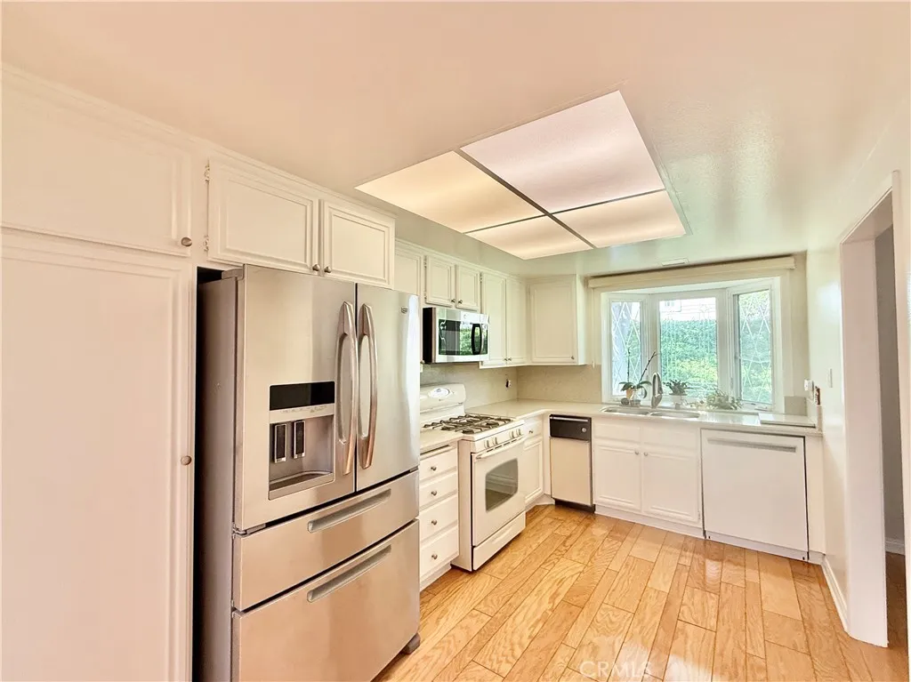 You’ll love this private and quiet, Costa del Sol 55+ guard gated community home. This two-bedroom, single level home is light and bright with an updated entry door with a beautiful leaded glass window. This home is situated on a quiet cul-de-sac. There are wood floors throughout. The living room has a charming stone fireplace. The kitchen has a large bay window that looks out to the quite greenbelt. The atrium area has been converted to indoor living, adding an additional 200 square feet! One of the bedrooms has a newer sliding door that opens up to a private patio that can also be accessed from the backyard. It is enclosed with vinyl fencing and gates. The windows have been replaced with dual panes and are covered with planation shutters. It has a spacious 2 car garage with lots of cabinets for storage. The air conditioning and water heater have been updated. Enjoy the many amenities, including pools & spas, pickleball, tennis, garden area, shuffleboard, clubhouse. Next to Oso Creek Gold Course. Lake Mission Viejo is also available for you, enjoy fishing and sailing or just relax on the beach.