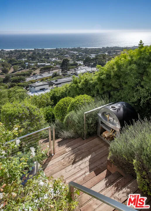 Welcome to a One-of-a-kind entertainer's paradise with unobstructed sunrise and sunset ocean views. Rare opportunity in Malibu Park to own a property that has Primary View Preservation Rights. This spectacular 3 bedroom 3.5 bath residence was extensively and thoughtfully remodeled with custom, high end designer finishes. Enter through stainless steel security gates into a tranquil entrance atrium where you can enjoy the ocean breeze and soothing sounds of a waterfall feature before being greeted by high ceilings, oak floors and spectacular panoramic views. The Gourmet kitchen features premium Dornbracht fixtures, Miele appliances and an outdoor Italian Pizza oven. Two sculptural marble fireplaces and floor to ceiling sliding doors that open up to approximately 2,000 sf of expansive Neolith-clad decks add dimension to the main entertaining level. The media room is complete with surround sound, custom black out curtains, and features a Wine connoisseurs dream: a temperature-controlled jewel of a wine room designed to display 450 bottles. The luxurious Primary suite features a decorative marble fireplace, large closet, motorized blinds, large steam shower and soaking tub with ocean views.An Entertainers' dream on the third level includes a stunning Ipe wood deck and a custom infinity saltwater pool with floating spa, fire pit, bar area, and a gym. The Landscaped, fenced in yard with outdoor lighting, includes a variety of mature fruit trees and flowers.Every detail has been thought of, a multi-zone speaker system, security cameras, Lutron lighting, tank-less water heater, and Halo water filtration system. Minutes from the famous Zuma beach, this one-of-a-kind Masterpiece is not to be missed!