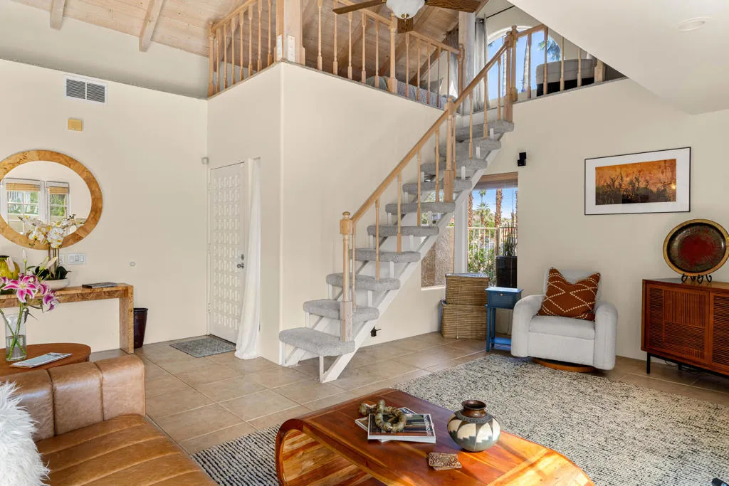 Tucked within the sought-after gated community of Canyon Heights at the base of the San Jacinto Mountains, this beautifully maintained two-bedroom, two-bath residence -plus Two Loft spaces . Both Bedrooms are located on the Main Floor. Property offers effortless Palm Springs living. Designed for comfort and flow, the light-filled interior features soaring ceilings, a spacious living area with fireplace, and seamless indoor-outdoor connection to a private patio and the community's largest enclosed courtyard. The thoughtfully designed layout includes expansive closets, a generous primary suite with spa-style bath, and well-proportioned guest accommodations ideal for visitors or flexible workspace. New HVAC and water softener have been recently been added. Residents enjoy resort-style amenities including multiple pools and spas, tennis and pickleball courts, fitness center, and clubhouse, along with direct access to the scenic and highly regarded Lykken Trail, plus close proximity to world-class golf, hiking, and downtown Palm Springs. Offered turnkey and move-in ready, this is an exceptional opportunity to experience the best of desert living in one of South Palm Canyon's most desirable communities. Also Property is situated on FEE SIMPLE Land ( Land you Own )
