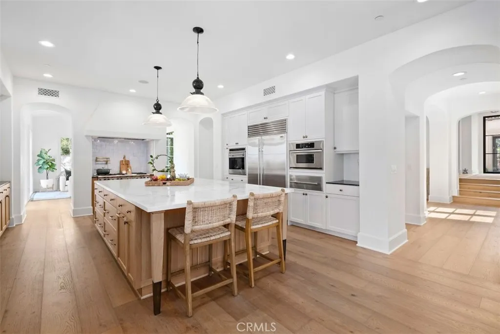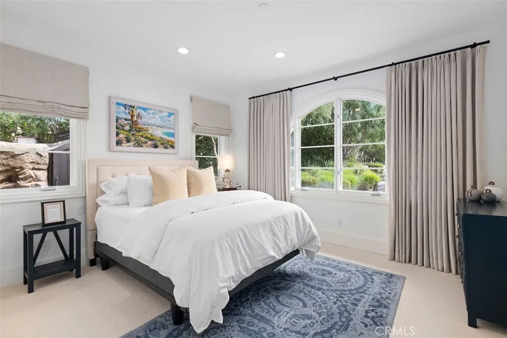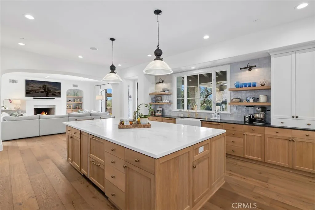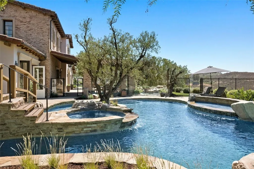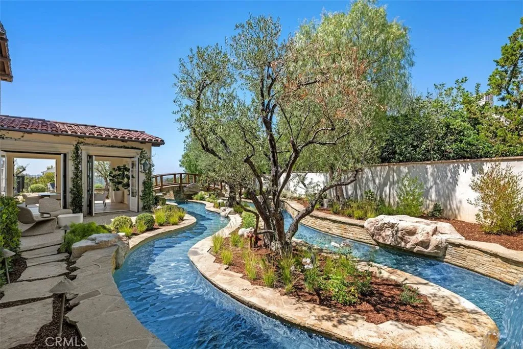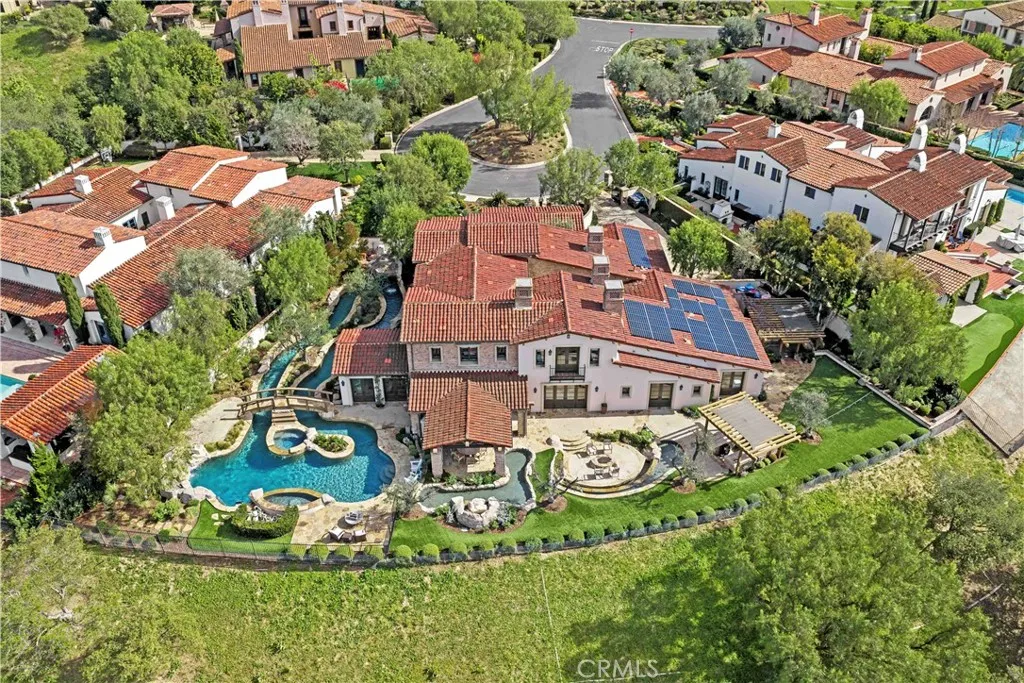 EXCEPTIONAL GOLF COURSE & CITY LIGHT VIEWS Reminiscent of new construction, this exquisitely renovated Master’s Collection residence is ideally positioned at the end of a short cul-de-sac on an over half-acre lot, capturing breathtaking golf course, rolling hill, and sparkling city light views. The five-bedroom, five-and-one-half-bath home has been thoughtfully transformed with refined finishes throughout, including warm hardwood flooring, curated designer lighting, elegant tile work, and detailed millwork that elevate every space. Resort-inspired grounds create a private oasis designed for both grand-scale entertaining and everyday indulgence. The extraordinary pool experience rivals a luxury retreat, featuring an elevated spa, lazy river, grotto, and tranquil waterfall - offering moments of play, relaxation, or both. The chef’s kitchen is a true centerpiece, appointed with top-tier appliances, bespoke cabinetry, and intentional design for both function and beauty. Adjacent living spaces provide seamless versatility: formal living and dining rooms open to a charming central courtyard through French doors; the family room and sunlit morning room frame the kitchen for effortless gatherings; and a custom-finished media lounge serves as a dramatic showpiece for elevated entertaining. The primary suite occupies its own expansive private wing on the second level. A spa-inspired bath anchors the retreat, complemented by dual walk-in closets - one currently configured as a private office. Additional highlights include a secondary bedroom wing with all ensuite accommodations, an attached guest casita with its own living room, and owned solar panels. Residents of Shady Canyon enjoy world-class amenities including two 24-hour guard gates, scenic walking and cycling trails, pickleball and tennis courts, a sports court, swim facilities, playground, and more - all moments from award-winning schools, UCI, and premier shopping and dining destinations.