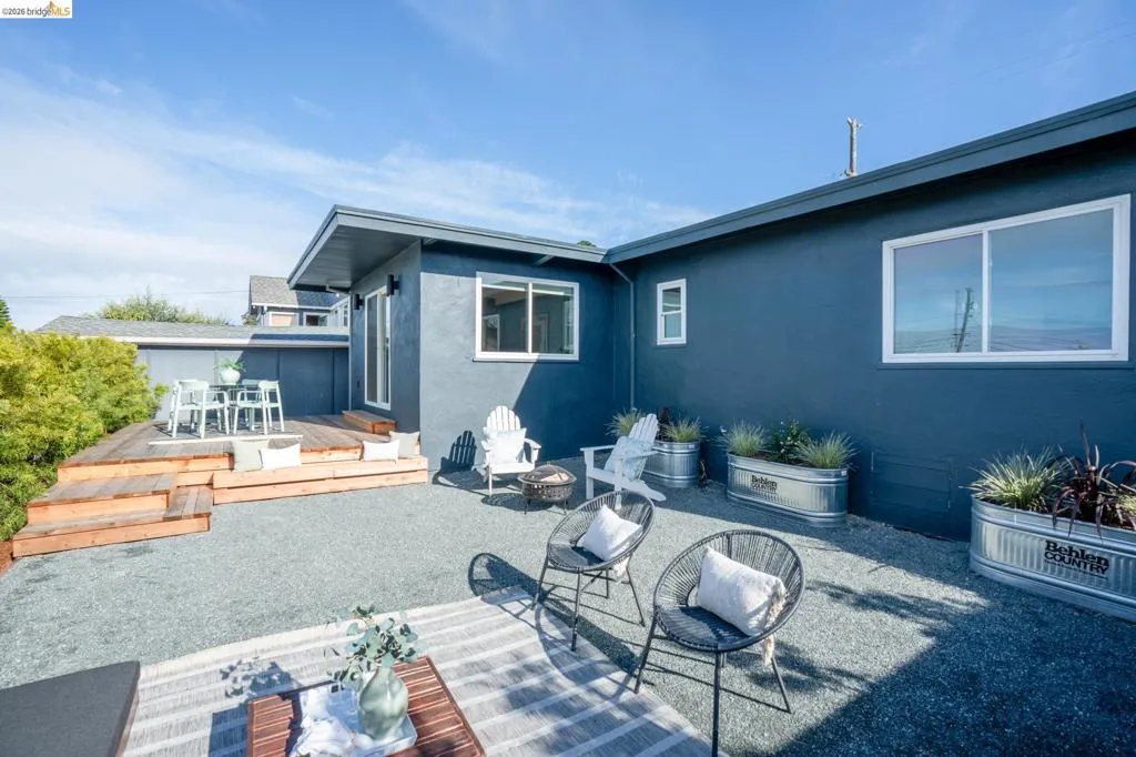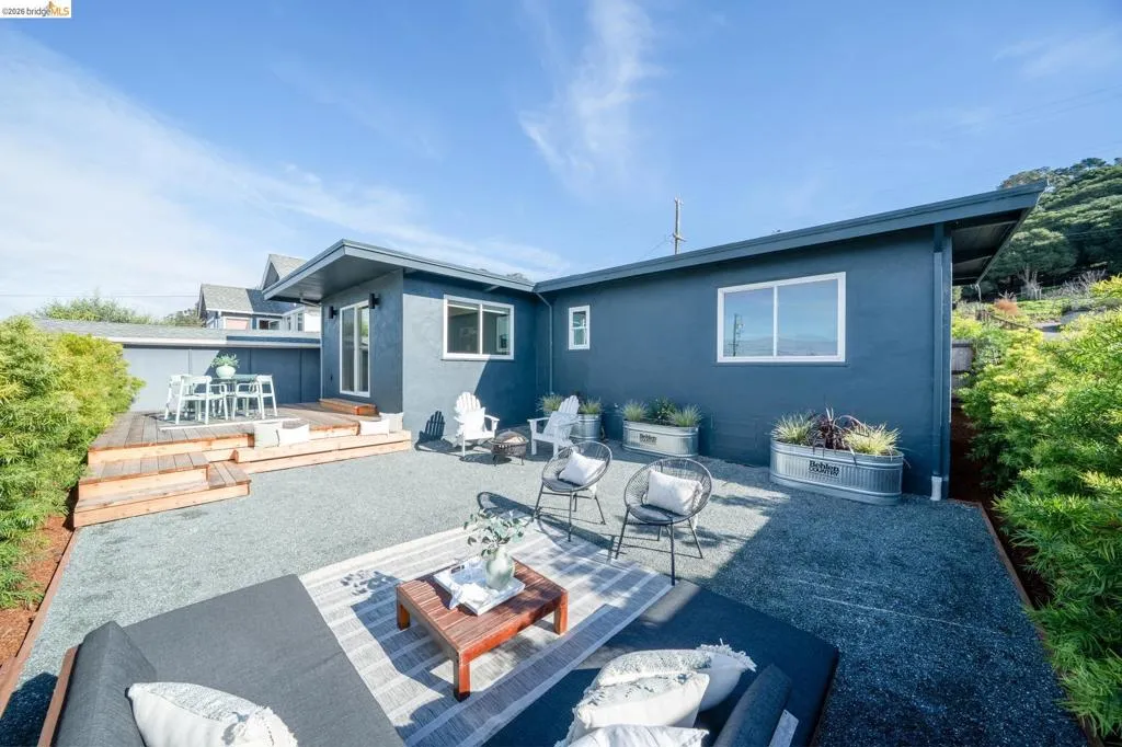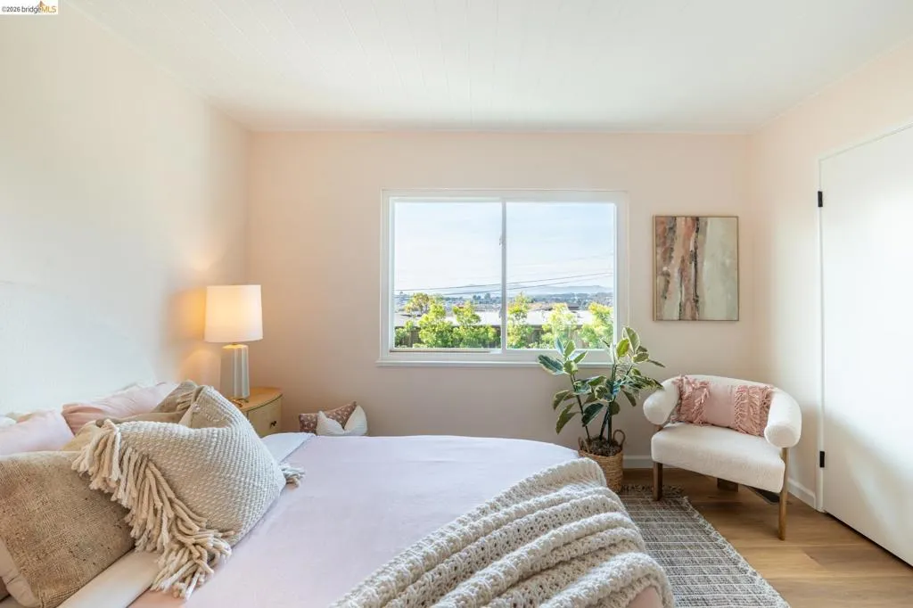 Perched above it all in El Cerrito, this level-in, mid-century gem blends clean design with modern upgrades—and delivers the kind of views that make you pause. From the primary suite’s private deck, take in sweeping vistas of SF, the Golden Gate Bridge, and Mt. Tam, an ever-changing backdrop of fog, light, and sky. This thoughtfully updated 2-bedroom, 2-bath home honors its architectural roots while embracing elevated finishes. The bathrooms feature artisan fireclay tile, sculptural concrete sinks, and warm brass fixtures that feel both timeless and current. Clean lines and curated materials create a calm, design-forward aesthetic throughout. Comfort meets efficiency with a heat pump system and an EV car charger—smart upgrades for modern Bay Area living. A wood-burning fireplace anchors the living space, inviting cozy evenings and intimate gatherings. The large garage offers exceptional flexibility—ideal for a home gym, studio, workshop, or future expansion. Outside, a low-water landscaped yard provides beauty without the maintenance, while the deck off the primary becomes your daily sanctuary—morning coffee with the Bridge, sunset wine with Mt. Tam. Located just moments from parks, local schools, and convenient shopping, this home offers both retreat and accessibility. Views: Downtown