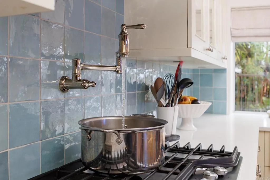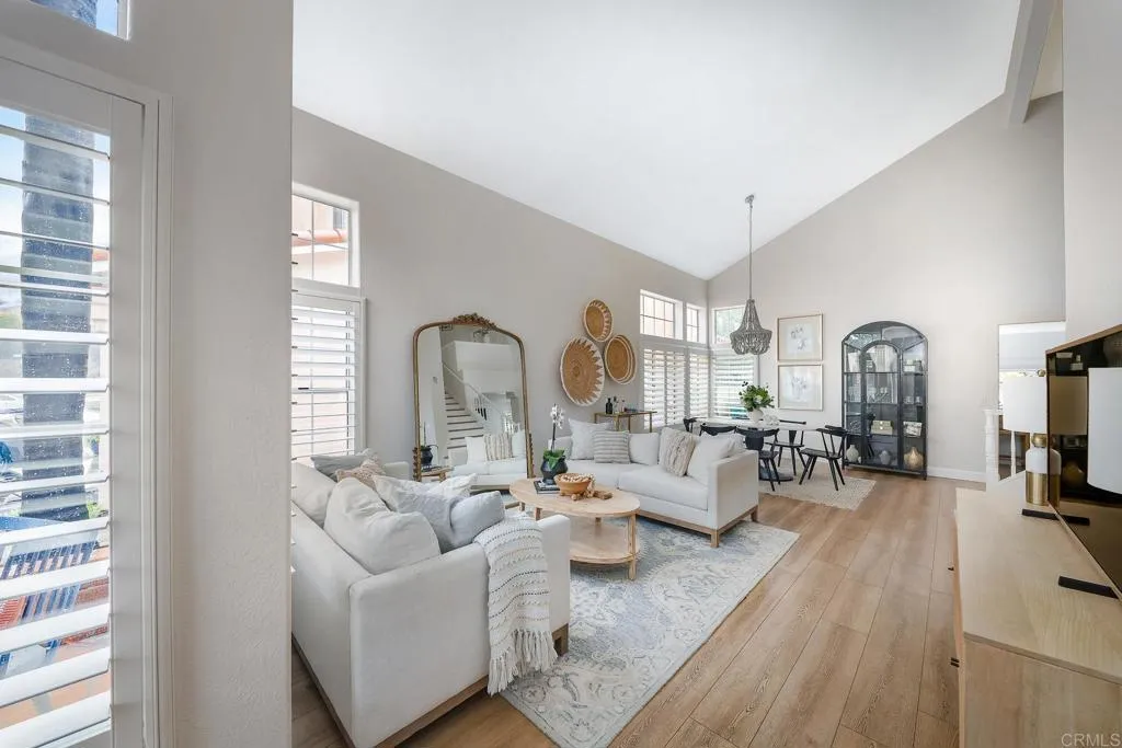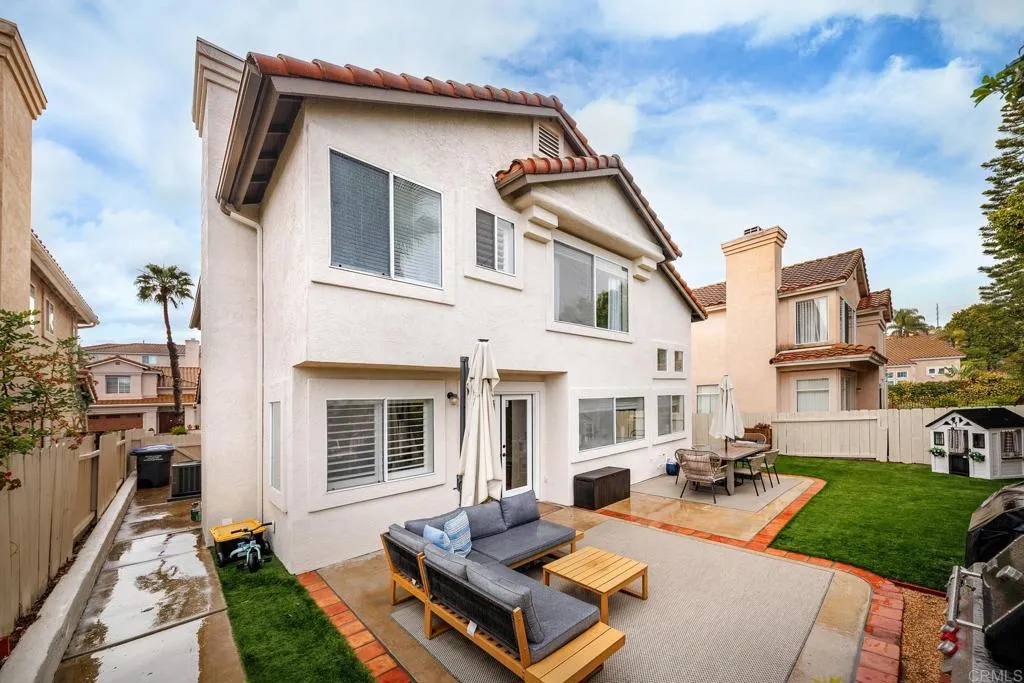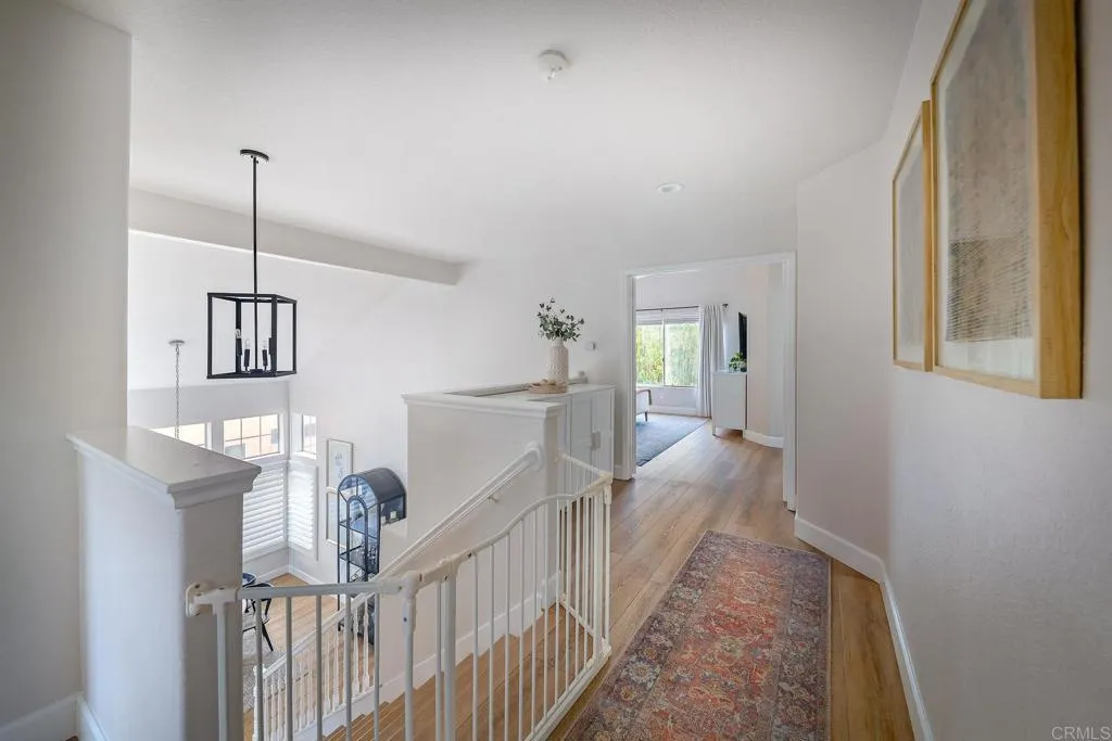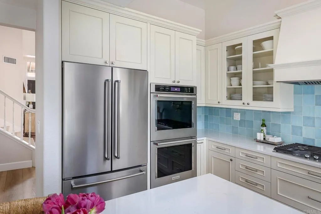Highly sought-after Alga Hills home in Carlsbad, beautifully positioned on a premium elevated lot with sweeping La Costa Valley views from the primary suite. This two-story residence offers 1,990 sq ft of open-concept living with 3 bedrooms and 2 full baths upstairs, plus a downstairs powder room, and features over $180,000 in renovations completed since 2021. The formal living and dining areas welcome you with soaring ceilings and abundant natural light. The fully remodeled chef’s kitchen includes custom cabinetry, an oversized island with seating and built-in storage, quartz countertops, farmhouse sink, double ovens, built-in microwave, pot filler, and wine refrigerator. The adjoining family room features a beautifully updated custom-tile fireplace, creating open-concept living. Luxury vinyl plank flooring extends throughout the home, complemented by a full interior repaint, refreshed lighting and electrical, plantation shutters, and remodeled bathrooms with modern fixtures and finishes. A new A/C unit was installed in 2022. Exterior improvements include fresh paint, low-maintenance turf in the backyard, and more. Community amenities include two pools and parks, with convenient access to beaches, shopping, dining, and award-area schools including La Costa Meadows Elementary School, San Elijo Middle School, and San Marcos High School.