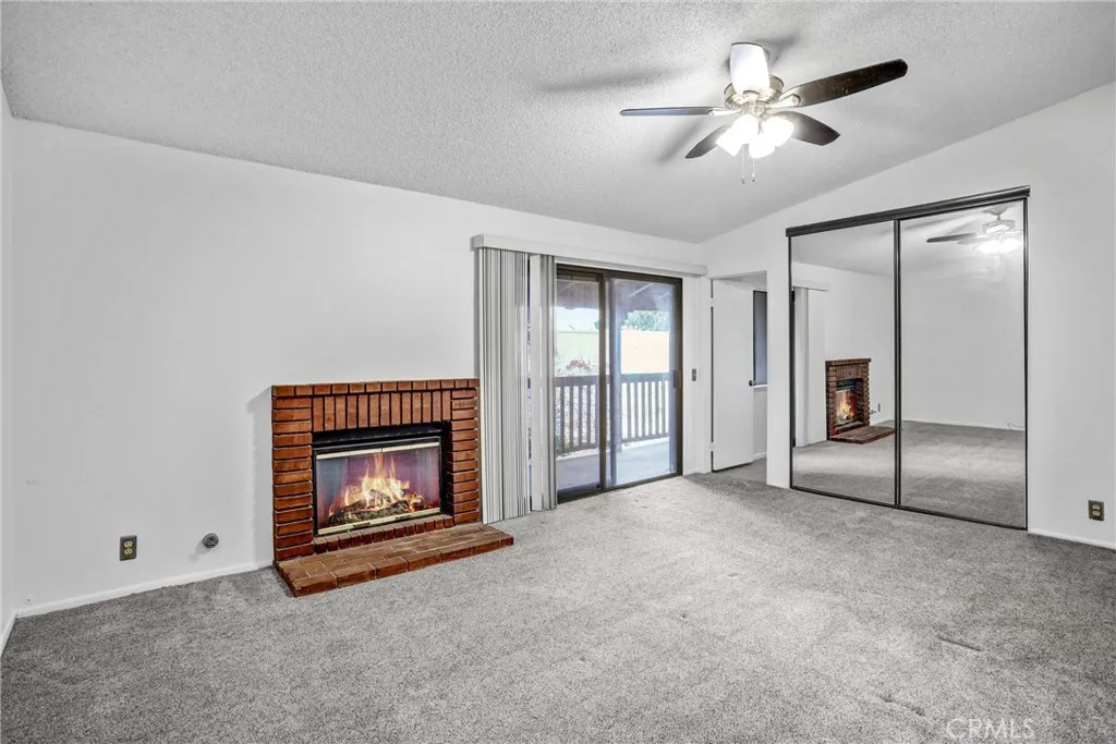 Beautifully refreshed two-story condo featuring dual primary suites, each with its own private bathroom and balcony. One suite offers a cozy fireplace, dual closets, and a walk-in shower, while the second includes a shower-tub combination for added flexibility. The upstairs also includes a convenient laundry area with ample built-in storage. The main level welcomes you with an inviting living space highlighted by a fireplace and updated flooring, flowing seamlessly into the dining area and stylish kitchen accented with custom tile work. A sliding glass door opens to a peaceful private patio complete with a built-in serving bar and BBQ area — perfect for relaxing or entertaining. This home has been recently painted and professionally cleaned, giving it a fresh, move-in-ready feel throughout. Additional features include central air and heat, ceiling fans, new carpet, washer, dryer, refrigerator, and a two-car attached garage. Water, trash, and HOA dues are included in the lease. Residents also enjoy access to the community pool and spa.