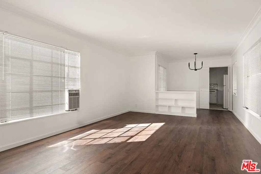 This bright, upper-level 1 bedroom, 1 bathroom home is located in a classic Beverly Hills courtyard building, just steps from the Four Seasons Hotel and Robertson Blvd. The unit features crown molding, modern light fixtures, updated flooring, and plenty of natural light throughout. The spacious living area flows into a charming dining nook off the kitchen, which offers ample cabinet space and includes a convenient secondary entrance for added ease and accessibility. The bathroom is refreshed with a sleek vanity and a full tub/shower combination. Additional perks include one assigned carport parking space, on-site laundry facilities, and water and trash included in rent. Set in an exceptionally convenient location near Cedars-Sinai, the Beverly Center, The Ivy, Alfred Coffee, and a variety of popular dining, shopping, and entertainment destinations.
