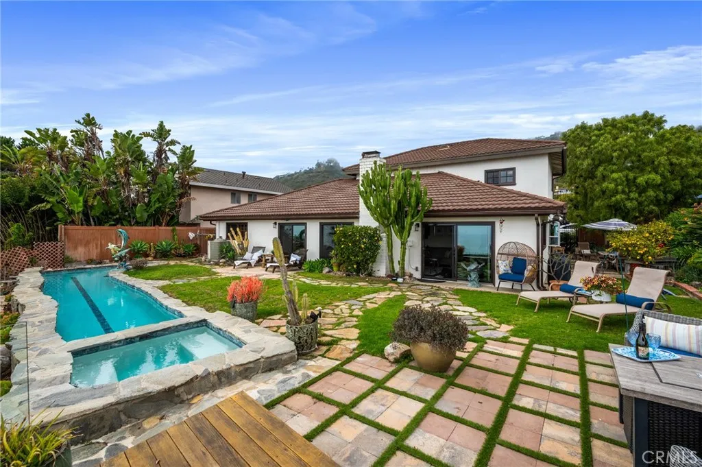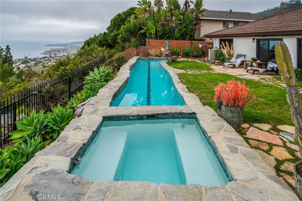 Welcome to your dream home in the highly sought-after community of Ladera Linda. Situated on the view side of Vigilance Dr, this stunning residence boasts 4 beds, 3 baths and is the perfect blend of comfort, style, and an outdoor paradise with breathtaking ocean and Catalina Island views, making it the ideal sanctuary! Ladera Linda is south facing, offering the best weather on the hill, and has underground utilities. The large formal entry with clear views of the ocean welcomes you to this retreat. The open-floor plan features a central staircase and provides a comfortable flow to each room. The large kitchen with living and eating area has a 6 burner gas range with convection oven, custom hickory wood peninsula and a slider to the lush side patio. The living and dining areas with huge ocean views offer a gas fireplace for cooler evenings. The spacious 1st floor primary suite is a true retreat, offering breathtaking ocean and coastline views. It features a large open dressing area with built-in closets and plenty of shelving, a remodeled primary bath with tile flooring and oversized shower with bench, rainfall showerhead and separate handheld. Bask in the sunshine and enjoy Catalina views while lying in bed or transform your day through the slider to the outdoor patio. The backyard resort-style living provides your own lap pool and spa, flagstone paths through natural grass and a redwood deck with sprawling views of Catalina, Terranea and the coast. Driveway pavers, wrought iron fencing, and Anderson Windows and doors add to the exterior's charm. There is so much more to see! Located in the award-winning Palos Verdes Peninsula Unified School District, this home is close to Golden Cove shopping and restaurants, Terranea Resort, Trump National Golf Course, and hiking trails. Experience coastal living at its finest. Don’t miss this rare opportunity to own a slice of paradise!