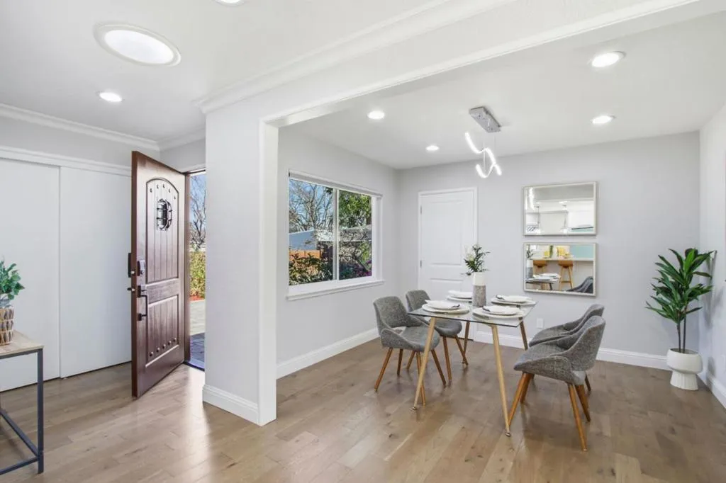 Highly sought-after Cambrian neighborhood, single story Nestled on a charming tree-lined street!! Lovingly maintained and updated over the years. Beautiful and spacious courtyard(landscaping 2023) and walking along the stamped concrete path to the entrance. Bright open-concept living room and kitchen. Installed 2 sun tunnel for entrance & hallway. Remodeled kitchen 1 skylight with Kraftmaid cabinets, quartz countertops, cascades voyage glass/stone backsplash, island, new Samsung refrigerator & dishwasher. Double pane windows with cellular blind throughout the house. Hardwood floor(Solid White Oak Distressed Flooring), energy efficient LED recessed lights, Insulation and electric line rewiring throughout the house. New main(200Amps) & sub electrical panels (2017). Repiping copper pipe(2012), replaced high efficiency gas Furnace, New Duct and A/C with Nest thermostat(2023). Attached 2 car garage with epoxy floor(2026). Solar is owned. Backyard with fruit trees. Painted new interior(2026) & exterior(2025) house. Prime location within walking distance to Carlton Elementary, Top Rated Schools and close proximity to downtown Los Gatos, downtown Campbell, shopping, restaurants, Santana Row and highway 85/17 for commuting!