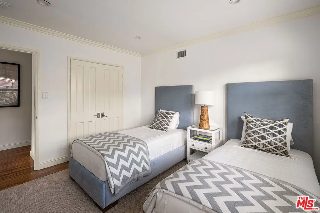 Nestled in the highly sought-after Huntington Palisades neighborhood, this beautifully updated single-story residence has been fully remediated and is move-in ready for its next family. The inviting living room, complete with a fireplace and French windows, seamlessly connects to the formal dining room. The kitchen features premium appliances and a charming breakfast area. A cozy den with its own fireplace and French doors opens to the backyard, creating an ideal indoor-outdoor flow. The spacious primary suite offers a generous walk-in closet along with an additional closet for ample storage. Two additional bedrooms share a well-appointed bath, and a powder room adds convenience for guests. Elegant finishes throughout include hardwood floors and thoughtful design details. The private, fully fenced grounds have been professionally landscaped and showcase a bluestone patio and walkway, a pergola with seating, and a sparkling pool with spa perfect for relaxing or entertaining. A detached two-car garage is complemented by a wide driveway accommodating two to three additional vehicles. Just moments from the beach and Palisades Village's renowned shops and restaurants, this exceptional property is a rare opportunity.