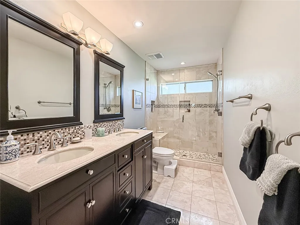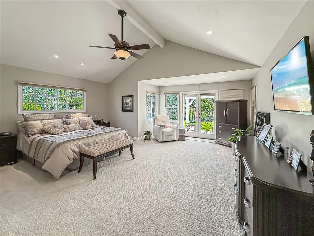 This gorgeous, highly sought after, ranch home embodies what Thousand Oaks living is all about. Upon entering, the peaceful backdrop of tree lined rolling hills greets you immediately. There is no escaping the beauty of nature from any room in this home. The many updated windows in every living area provide endless views of mature trees and greenery. The high ceilings allow for tons of natural light and add to the feeling of being transported into the countryside. With over 3200 sq ft, this single-story home offers four bedrooms and 4 bathrooms. The layout is ideal with the primary located on one side of the home and the other three rooms on the other. One bedroom is currently being used as an office with solid built-in desks providing functionality. Designed with a seamless flow for daily living, the floorplan offers a renovated kitchen with an eating area that opens to the family room and directly to the outdoor area which is professionally landscaped and equipped with tasteful pavers, a built-in BBQ, and covered patios. There is also a formal dining room, living room, and bar area, which all overlook the outdoor scenery and lend the home to effortless entertaining. The primary bedroom is a true escape designed with detail in mind. The large room has a picture window view of the backyard, the closet has been enlarged and custom fitted for optimal storage and function, and the jetted tub and double sink with a vanity built in offer spa-like luxury. The large laundry room leads to the 3-car garage. One bay has been remodeled with added storage and a large tool bench. On the other side of the home, you will find three other bedrooms. One of those secondary bedrooms has a large en-suite bath which could be a great option for guests, in-laws, or children. This home offers all renovated bathrooms, ample cabinets throughout the home, custom shutters, leased solar that keeps electrical bills very low, a security system in place, surround sound in the family room, wiring for an EV charger, and 3 Ring cameras. The real star of the show is the yard and the views from it. Perched on the hill, the view goes on for miles, nature is all around you, and you cannot miss the sheer calm that this home provides. The HOA includes a basketball/sport court, a tennis court and walking trails. You do not want to miss it!!