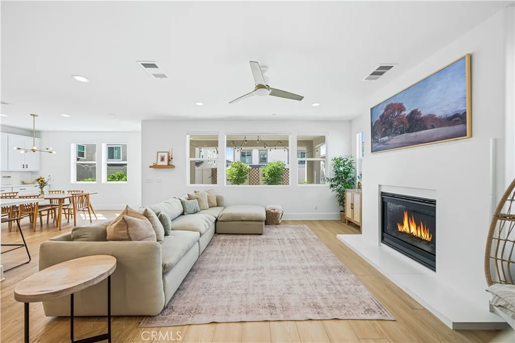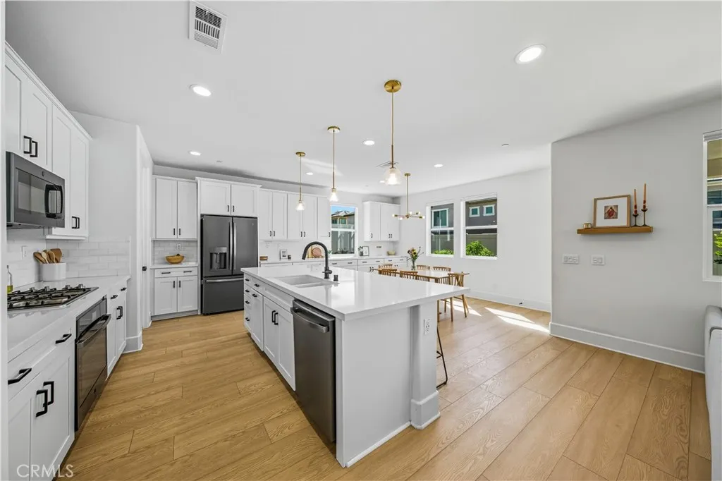 Welcome to 32017 Radiant Drive, a fantastic, fully updated, 4-bedroom, 3-bathroom home with a 2-car garage in a highly desirable Temecula community. This property is built for modern living, offering a perfect blend of stylish interiors, incredible amenities, and a convenient location. It's a turnkey opportunity to secure a vibrant, amenity-rich lifestyle. Inside, you will find high ceilings, recessed lighting, and a mix of upgraded luxury vinyl plank, tile, and carpet flooring not only for easy maintenance, but also for added style. When it comes to layout, this house speaks to convenience, as it includes a main-level bedroom and full bathroom, providing ideal flexibility for you and your guests. The gourmet kitchen features Quartz counters and a large island that flows openly to the family room with a fireplace - perfect for gatherings so you won't miss any of the action. Outside, you can easily relax on the covered patio with views of the surrounding hills. By living here, you don't just enjoy the comforts of your turnkey home. You can also access amazing facilities such as the community pool, spa, clubhouse, gym, sports courts, dog park, and miles of biking/hiking trails!