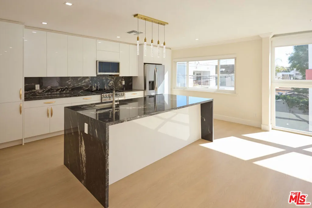 Modern and secure, this newly renovated 2-bedroom, 2-bath apartment features an exceptionally sunny southern exposure. The kitchen has all newer modern appliances, a new washer-dryer, and wood flooring. The primary bedroom has an en-suite bathroom. Located just off Wilshire, the apartment is around the corner from Trader Joe's, less than 500 feet from Whole Foods, and just a few blocks from your morning smoothie at Erewhon. Easy access to UCLA's Santa Monica Medical Center and Providence Saint John Health Center, as well as the beach and all that the west side has to offer. One parking space is provided behind the building.