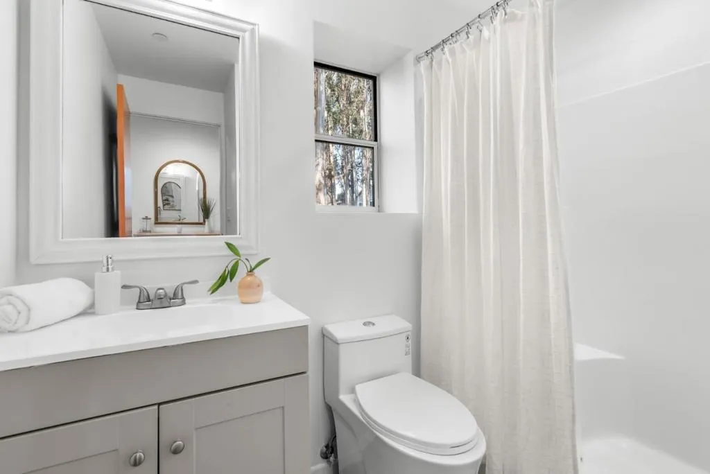 Refined Coastal Living, Effortlessly Experienced. Designed by a world-renowned architect and completed in 2023, this striking modern retreat offers a rare opportunity to slow down and savor life just steps from the sand and Moran Lake. Privately set on an expansive 15,246 SF lot along a quiet private road, the home evokes a sense of calm, space, and connection to its natural surroundings. Spanning 2,099 SF, the residence features 3 BRs and 3.5 baths, including a flexible lower-level bedroom and bath with separate entrance and private patio ideal for guests, extended stays, or a peaceful retreat. Clean lines and elevated finishes create a warm, modern sanctuary, complemented by bamboo flooring, custom maple cabinetry, distinctive Kerf door jambs, and a Mitsubishi mini-split system for year-round comfort. Soaring ceilings and expansive view windows invite sunlight to pour in, creating a light-filled, uplifting atmosphere throughout. The open-concept design flows seamlessly outdoors. A garage and ample additional parking provide everyday ease in this sought-after coastal setting. A rare opportunity to experience a newly built architectural home in an exceptional location, just moments from the rhythm of the ocean.