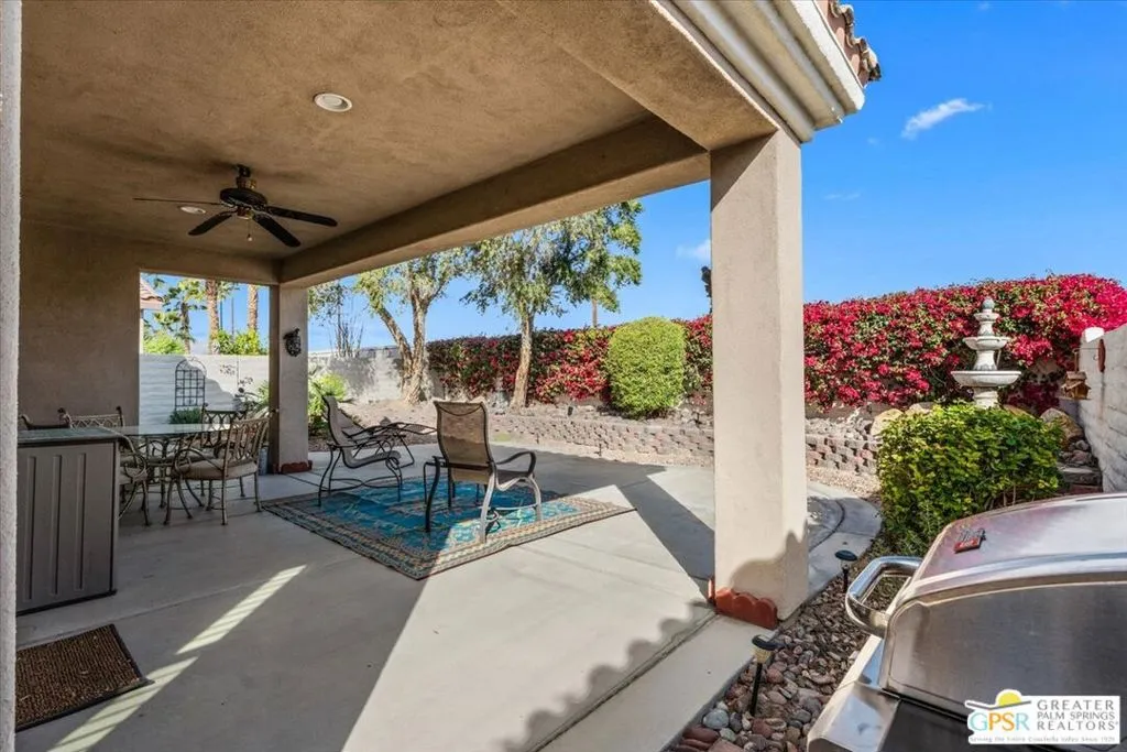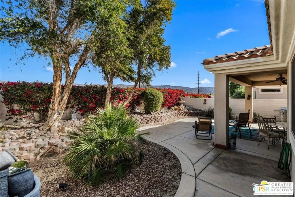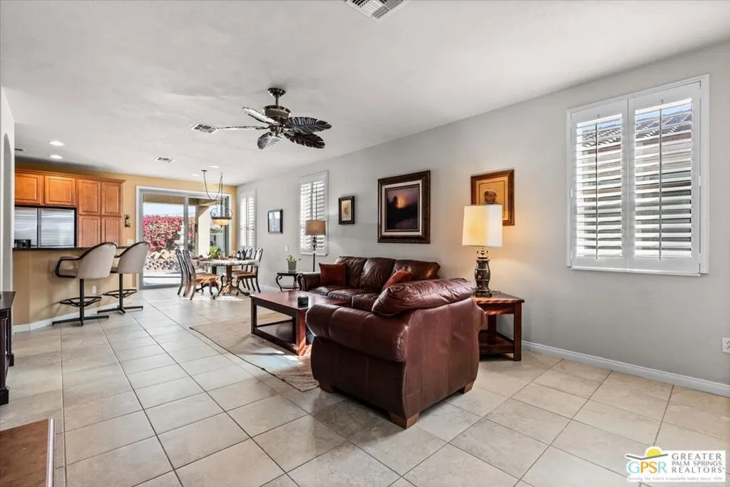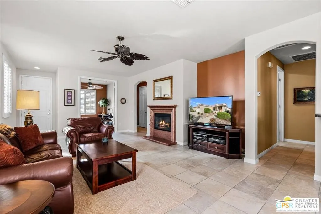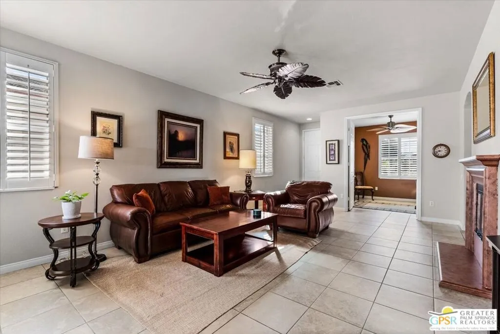 Welcome to 80326 Avenida Linda Vista, located in the highly desirable guard-gated 55+ community of Sun City Shadow Hills. This beautifully maintained 2-bedroom + den, 2-bath home offers comfort, style, and easy living all competitively priced to present an exceptional opportunity in today's market. The thoughtfully designed interior features plantation shutters throughout, a cozy living room fireplace a feature not found in all Shadow Hills homes granite kitchen countertops, and a separate laundry room complete with a wash basin. Step outside to enjoy the low-maintenance landscaping, highlighted by a mature fruit tree and an expanded patio, creating the perfect setting for relaxing mornings or entertaining guests while soaking in the peaceful surroundings. For added convenience, the home is available furnished, making it an ideal full-time residence, seasonal retreat, or investment opportunity. Residents of Sun City Shadow Hills enjoy an exceptional lifestyle with access to two clubhouses, championship golf courses, three resort-style pools (including one indoor pool), a state-of-the-art fitness center, tennis courts, plus a wide variety of social clubs and activities. Internet service is also included, adding to the convenience. Ideally situated with easy access to shopping, dining, and freeway travel, this home offers the perfect blend of comfort, value, and vibrant community living. Come experience the lifestyle you've been waiting for!