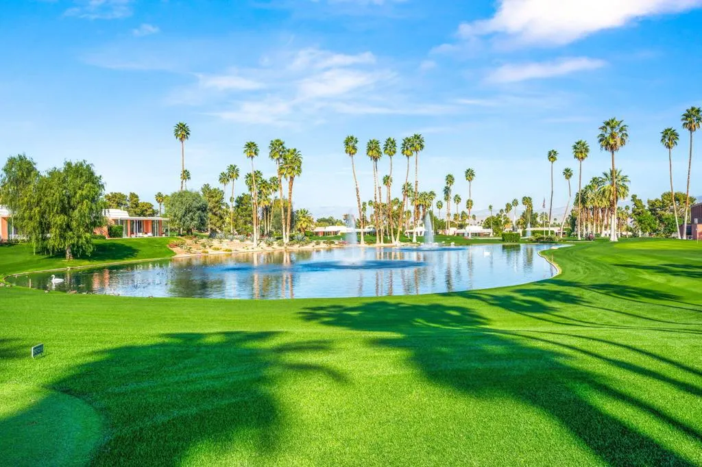 Experience refined desert living in this sought-after 'C Plan' residence within the coveted Marrakesh Country Club. Perfectly situated along the 9th green, this home captures sweeping westerly views of the shimmering lake and dramatic mountain silhouettes , a setting that feels both serene and cinematic.Floor-to-ceiling windows in the living and dining rooms flood the interiors with natural light and frame sweeping fairway, lake, and mountain views, creating an exceptional full-time residence or desert retreat. The primary suite features floor-to-ceiling windows and direct patio access for seamless indoor-outdoor living and stunning sunset vistas. Opposite the primary suite, the guest suite offers private access to the tranquil front courtyard for ideal comfort and separation.Expanded patio spaces provide a spectacular setting for evening gatherings overlooking the course, while the private front courtyard, surrounded by lush gardens and mountain views, is perfect for morning coffee or afternoon tea.Marrakesh amenities include an 18-hole private executive golf course designed by Ted Robinson, tennis and pickleball courts, 14 pools and spas, a fitness center, and a newly remodeled clubhouse with fine dining. Located near world-class golf and the luxury boutiques and dining of El Paseo, 47483 Tangier Place offers premier resort living.