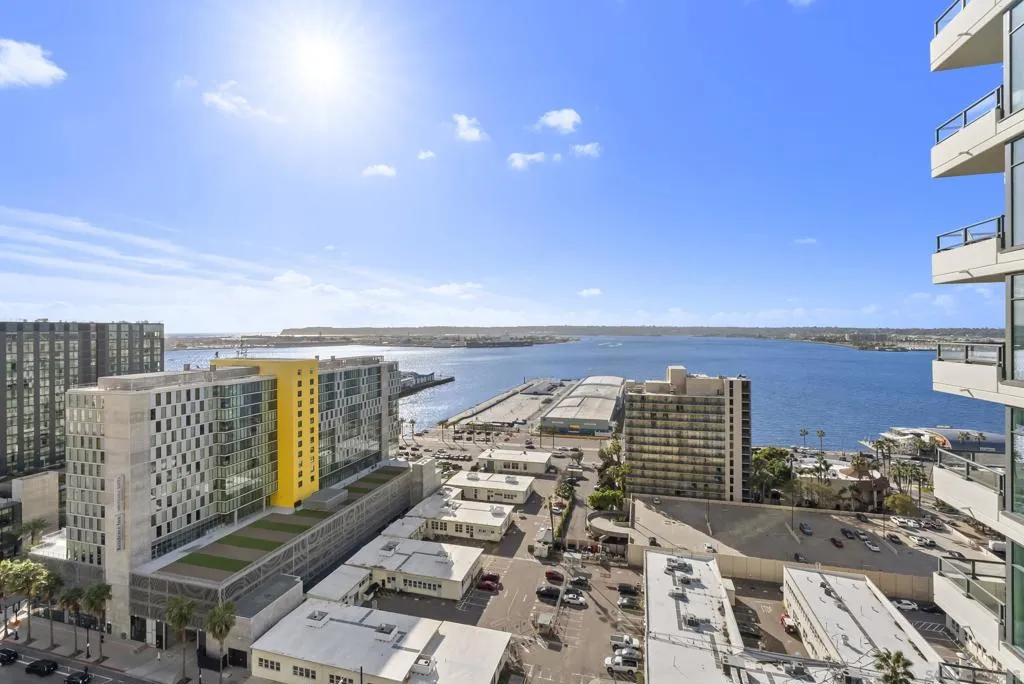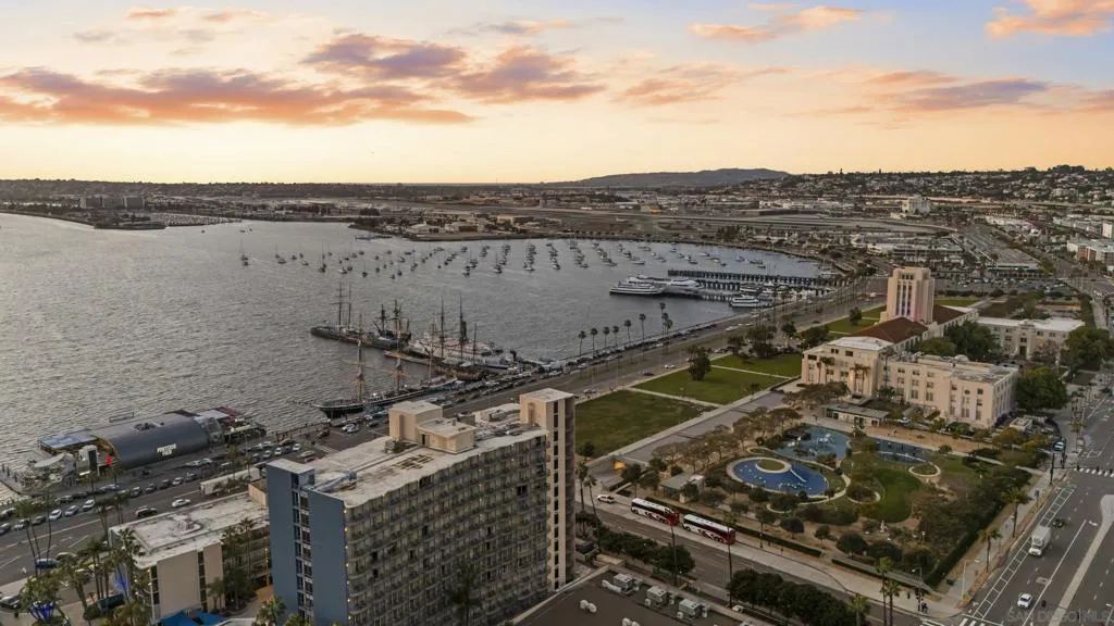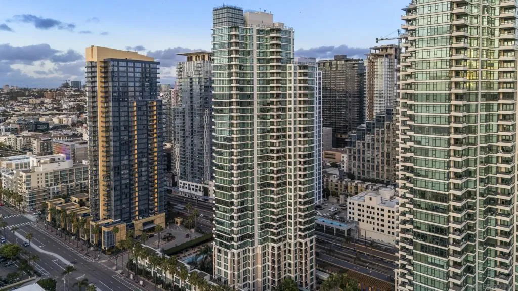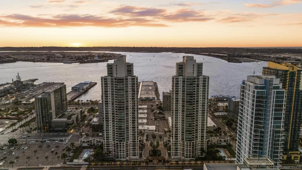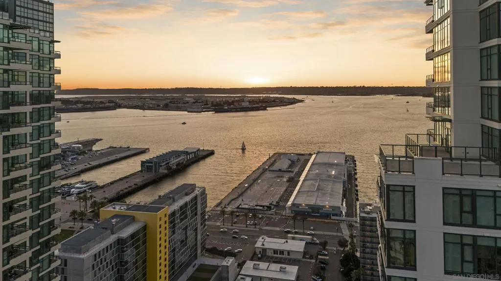 Perched 21 floors above the San Diego Bay, this rare residence at The Grande North offers one of the most coveted vantage points in the building. Spanning approximately 1,655 square feet, this expansive 2-bedroom plus office, 2-bath home is widely regarded as one of the premier orientations in the tower—celebrated for its breathtaking panoramic views of the bay, Pacific Ocean, and glittering downtown skyline. Walls of glass frame unforgettable sunsets and ever-changing waterfront scenery, filling the open living and dining areas with natural light. A dedicated office provides flexibility for remote work or a private retreat, while the thoughtful layout balances openness with refined separation—ideal for both entertaining and everyday living. The Grande North is one of downtown San Diego’s landmark luxury towers, known for discretion, security, and elevated standards. Residents enjoy 24-hour security, concierge service, controlled access parking, private storage, and multiple high-speed elevators. Resort-level amenities include an 80-foot lap pool, spa, sauna and steam rooms, a state-of-the-art fitness center, elegant resident lounges, outdoor barbecue areas, and a private guest suite. Located in the prestigious Columbia District, steps from Waterfront Park, the bayfront promenade, Seaport Village, and downtown’s finest dining and entertainment, this is walkable urban living at its most refined. Opportunities in The Grande North are rare—this is more than a residence; it is a distinguished holding in one of San Diego’s most iconic addresses.