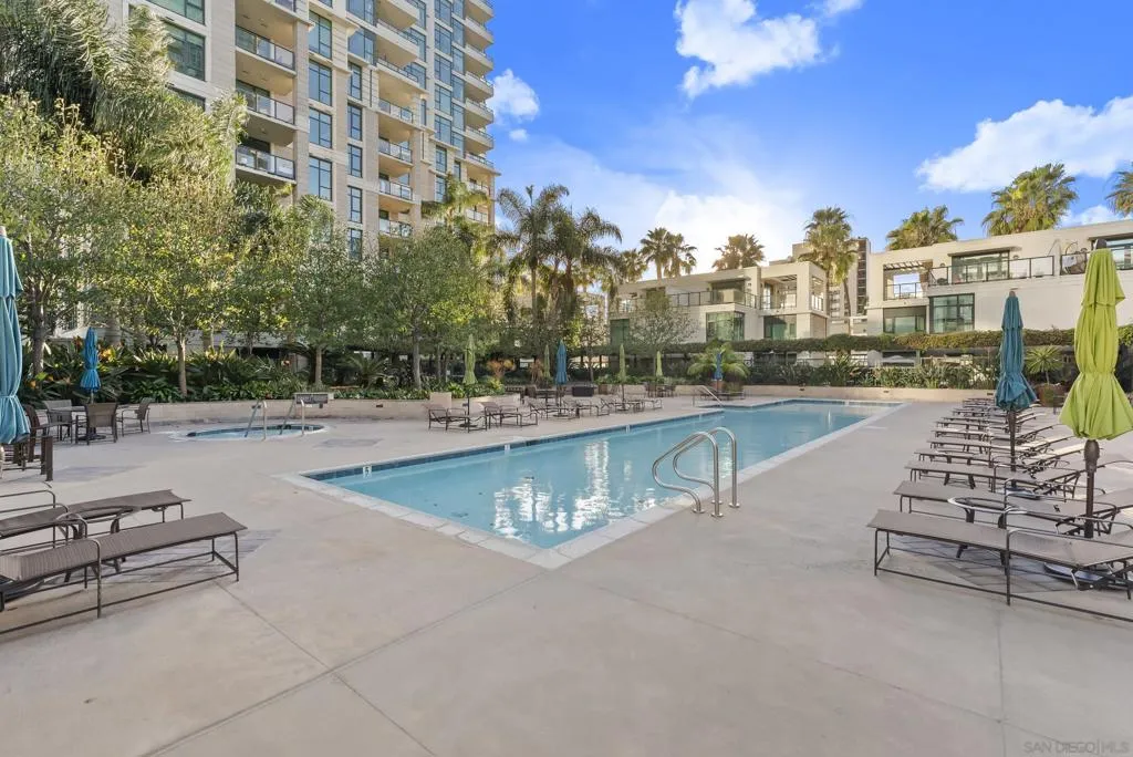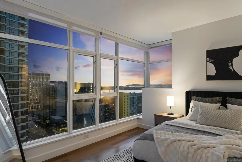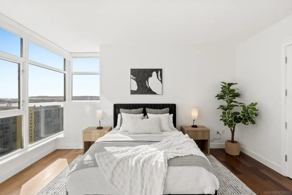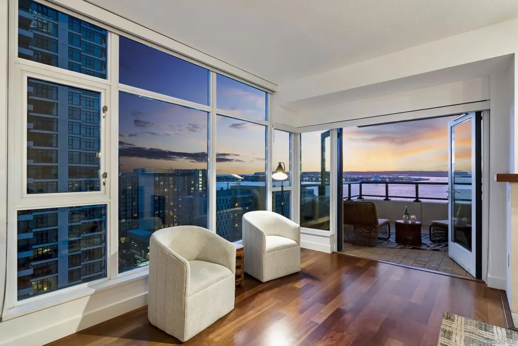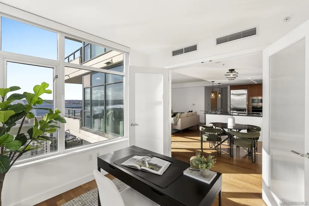 Perched 21 floors above the San Diego Bay, this rare residence at The Grande North offers one of the most coveted vantage points in the building. Spanning approximately 1,655 square feet, this expansive 2-bedroom plus office, 2-bath home is widely regarded as one of the premier orientations in the tower—celebrated for its breathtaking panoramic views of the bay, Pacific Ocean, and glittering downtown skyline. Walls of glass frame unforgettable sunsets and ever-changing waterfront scenery, filling the open living and dining areas with natural light. A dedicated office provides flexibility for remote work or a private retreat, while the thoughtful layout balances openness with refined separation—ideal for both entertaining and everyday living. The Grande North is one of downtown San Diego’s landmark luxury towers, known for discretion, security, and elevated standards. Residents enjoy 24-hour security, concierge service, controlled access parking, private storage, and multiple high-speed elevators. Resort-level amenities include an 80-foot lap pool, spa, sauna and steam rooms, a state-of-the-art fitness center, elegant resident lounges, outdoor barbecue areas, and a private guest suite. Located in the prestigious Columbia District, steps from Waterfront Park, the bayfront promenade, Seaport Village, and downtown’s finest dining and entertainment, this is walkable urban living at its most refined. Opportunities in The Grande North are rare—this is more than a residence; it is a distinguished holding in one of San Diego’s most iconic addresses.