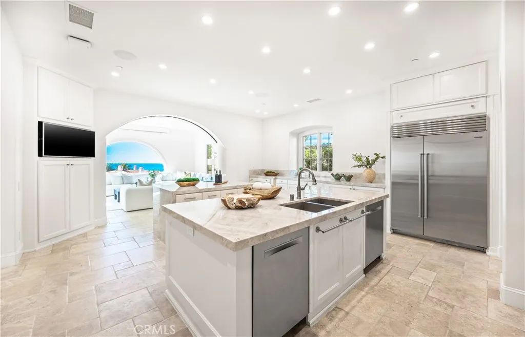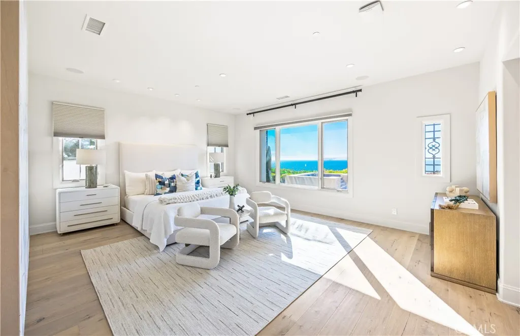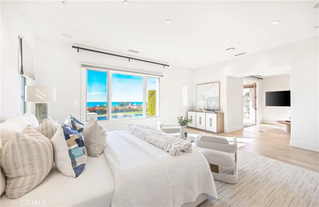 Located within the prestigious guard-gated enclave of Crystal Cove in Newport Coast, 24 Timor Sea is a rare single-level ocean-view estate with a bonus room upstairs, ideally positioned on an oversized corner lot to capture sweeping coastline and sunset views. Designed for both effortless living and elevated entertaining, the home offers all bedrooms on the main level, including a spacious primary suite featuring a spa-inspired bath and an expansive walk-in closet. The thoughtful floor plan lives primarily as a single story—an increasingly rare offering in the community—while the existing upstairs bonus room provides flexible space for a media lounge, office, or private retreat. The property previously had plans to convert the upstairs rotunda into an additional bedroom. A permit for this work was issued approximately four years ago but has since expired; however, it may be possible for a future owner to re-apply for the permit if they wish to pursue the conversion and expand the usable living space. The home also features a fully integrated Crestron smart home system that controls lighting, climate, security, and whole-home audio through multiple in-wall control panels, providing modern convenience and seamless automation throughout the residence. In addition, the home includes a dedicated movie theater with surround sound, creating a true cinematic experience. The current owners have invested approximately $300,000 in smart home and technology upgrades throughout the property. The theater itself was originally built by the previous owner, who made significant investments in the space. French doors and expansive windows frame stunning ocean vistas while opening to beautifully curated outdoor spaces that enhance seamless indoor-outdoor living. A private gym adds to the home’s lifestyle amenities. The elevated corner setting maximizes privacy, natural light, and view frontage. Additional highlights include a paid-off solar system, a three-car garage, and close proximity to Crystal Cove’s world-class beaches and shopping promenade. This is a rare opportunity to own a predominantly single-level ocean-view residence in one of Newport Coast’s most sought-after coastal communities with future expansion potential already in place.