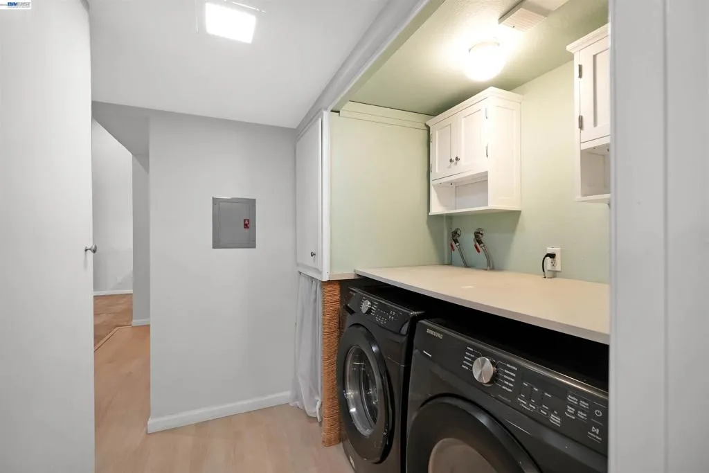 OPEN HOUSE SATURDAY AND SUNDAY 1-4PM!! Beautiful top-floor condo featuring soaring cathedral ceilings and abundant natural sunlight. This spacious 1 bedroom, 1 bathroom home offers a huge bedroom, updated kitchen, newer flooring, cozy fireplace, and convenient in-unit indoor laundry. Located on the third floor with plenty of storage and a designated parking space. Enjoy the security of a gated community with resort-style swimming pools and lush grounds. Prime Fremont location close to shopping, restaurants, major Silicon Valley employers, and easy access to highways and commute routes. Situated within highly regarded Fremont schools.