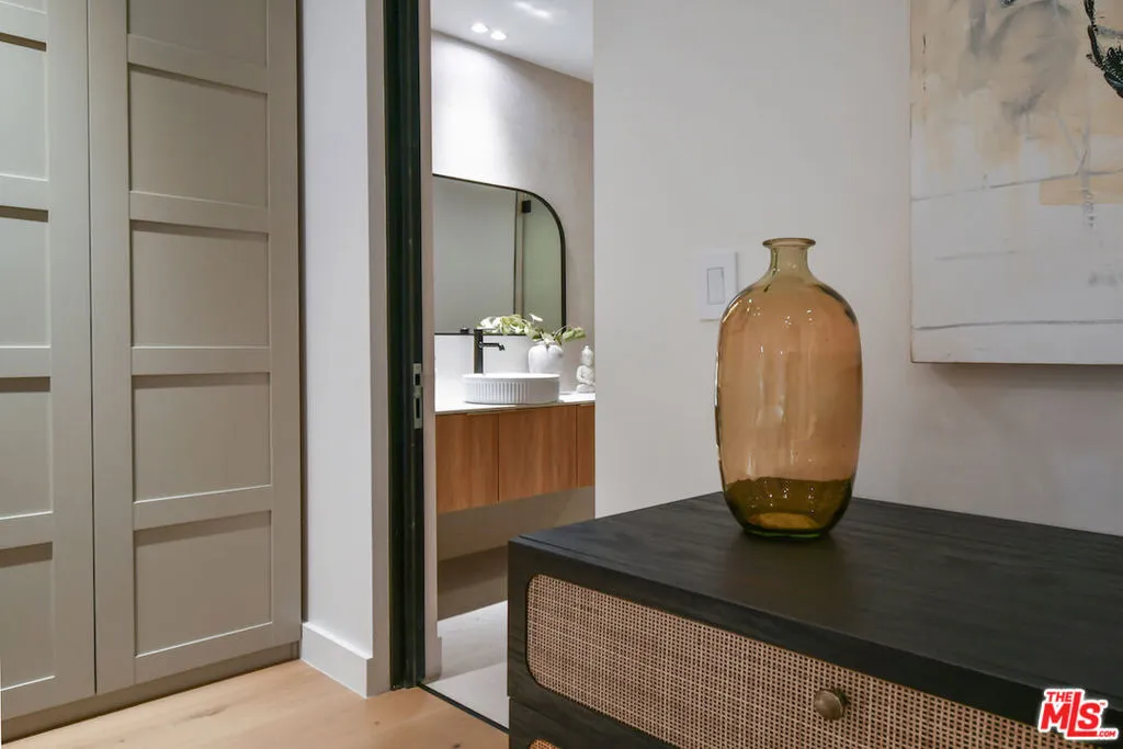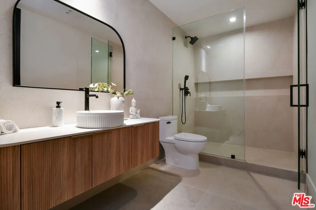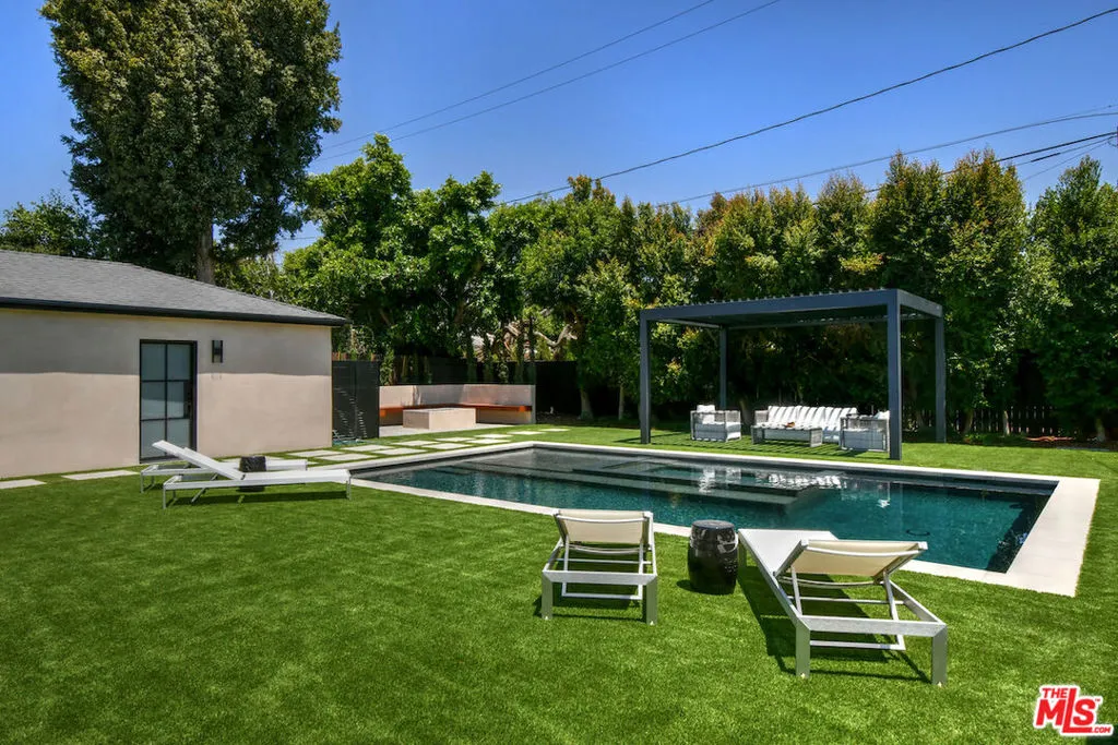 Every great neighborhood has that one special street. The one people talk about. The one people wait for. Welcome to 112 South Valley, a newly constructed, modern masterpiece that redefines luxury living. Perfectly positioned on one of Burbank's most coveted cul-de-sacs, this home offers the best of both worlds: the peace of mind that comes with Burbank's exceptional city services, outstanding public safety, and top-rated schools, paired with the prestige, warmth, and community charm of Toluca Lake. The designer thoughtfully curated every detail of this 6,043-square-foot residence to showcase architectural brilliance and deliver the soul-stirring promise of a life well lived. From the moment you arrive, the dramatic, solid white oak pivot front door opens to a world of refined elegance. Soaring ceilings and walls of Marvin windows flood the space with natural light, while rich textures, such as Marmorino Italian plaster and Portolan limewash, create an ambiance of sophistication. Whether you're gathering in the expansive living room, relaxing in the family room, or entertaining in the chef's kitchen adorned with custom Shinnoki walnut cabinetry, oversized double faucet sink, Thermador appliances, and a sleek butler's pantry, this home is an experience of flow, function, and flawless beauty. Five en-suite bedrooms, each a private retreat, offer comfort and serenity. The primary suite, situated above the expansive landscaped grounds, features a spa-inspired bath, a custom walnut walk-in closet, and a balcony where you can greet the day with sunshine and the soothing sounds of the morning air. Downstairs, a state-of-the-art theater, rec room, bonus space, and a sleek bar come together to create the ultimate setting for fun and entertainment, whether you're hosting game night, enjoying a movie with family, or simply unwinding with friends in style. Step outside and be transported. The backyard is a sanctuary of its own, featuring a black-bottom saltwater Pebble Tek pool with a Baja shelf and spa, two innovative motorized patio systems, an Ipe wood fire pit bench, and a complete outdoor bath/mudroom. Entertain effortlessly or unwind in total privacy beneath the stars. The home offers the latest in technology and convenience, featuring Control4 smart home automation, a quad-zone Carrier climate control system, an integrated sound system, custom lighting, and sleek Samsung washer/dryers. Additional amenities include fully underground electrical, solar panels for enhanced energy efficiency, and an electric car charger in the spacious garage. Every element from fluted limestone accents to custom linear drain installations reflects the highest standards of design and craftsmanship. However, the true luxury of 112 South Valley lies in the lifestyle it offers. Here, neighbors greet each other by name. Stroll into Toluca Village for your morning coffee, dine al fresco at your favorite local spot, or attend a community event where everyone feels like family. You're minutes from top-rated schools, major studios, the Lakeside Golf Club, and iconic LA landmarks like Griffith Park and the Hollywood Bowl. 112 South Valley is more than a home; it's your place in a vibrant, welcoming community with a rare opportunity to live in modern splendor, in a neighborhood where connection and character matter.