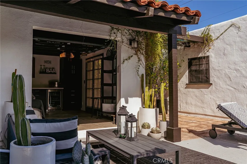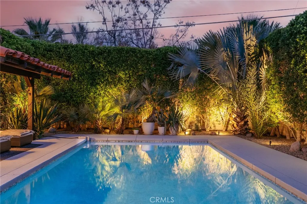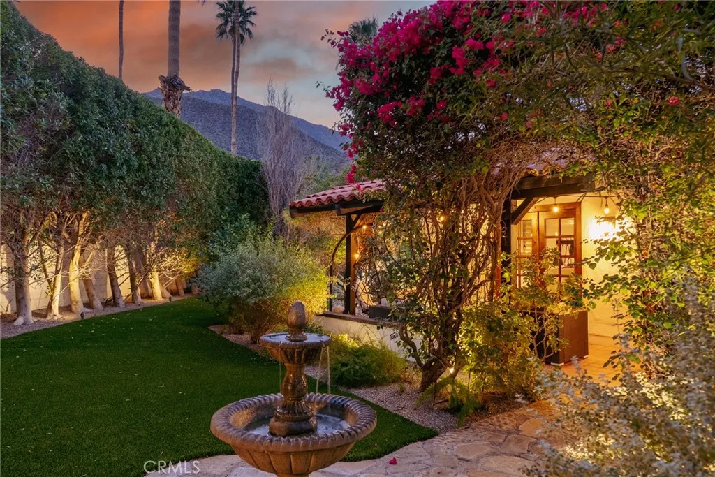 Tucked into the coveted Mesa neighborhood, this Spanish-style retreat offers privacy, presence, and timeless character. A bougainvillea framed archway and gated courtyard entry create a romantic sense of arrival while preserving the home’s quiet seclusion, just minutes from the energy of downtown. The main residence features 2 bedrooms and 2 baths, complemented by a detached poolside casita with its own bath, creating a 3 bedroom compound layout. An additional cabana offers flexibility as a fourth bedroom, studio, gym, or private office. French doors open to multiple patios, seamlessly connecting interior living spaces with the outdoors. Exposed wood beams, custom finishes, and carefully curated details reflect classic Spanish architecture with a refined, modern sensibility. The grounds are thoughtfully landscaped for privacy and ease, with multiple areas for entertaining and relaxation. The pool and surrounding outdoor living spaces are designed for effortless desert living, from quiet mornings to evening gatherings under open skies. A distinctive offering in one of Palm Springs’ most established neighborhoods, thoughtfully designed and exceptionally maintained.