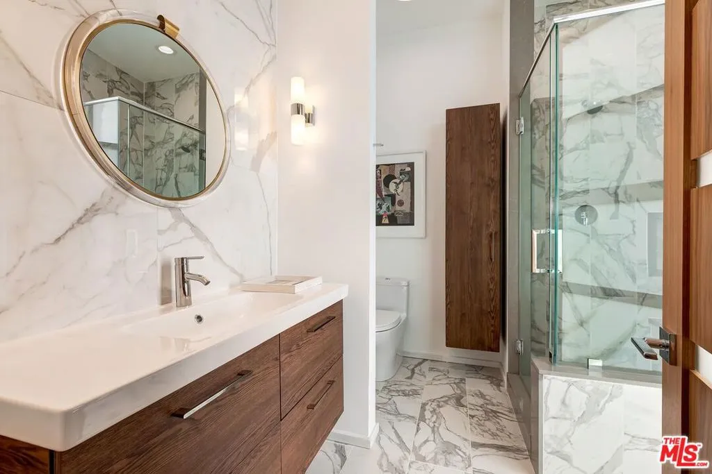 Absolutely breathtaking city and hillside views define this single-story contemporary in prime Bel Air. Featuring 4 bedrooms, 5.5 baths, and a dedicated office, this fully remodeled & move in ready residence showcases sleek, modern design and a sophisticated, contemporary aesthetic throughout. Sun-drenched interiors with expansive walls of glass seamlessly connect indoor and outdoor living. A spectacular backyard retreat with a pool, spa, and oversized entertainer's patio all set against panoramic, head-on views. Designed for both grand-scale entertaining and effortless everyday living with an impressive living room, formal dining area, and a lounge-style wet bar. The open-concept kitchen flows directly into the family room, creating a true gathering space at the heart of the home. A luxurious large primary suite opens to the backyard and features two private bathrooms with two oversized walk-in closets. Bedrooms 2 & 3 offer generous proportions with en-suite baths, while a 4th bedroom located just off the kitchen provides flexibility for guests or staff. Spacious three-car direct-entry garage and convenient circular driveway. Completely private and serene, this is a rare opportunity to own a single-story, move in ready contemporary with extraordinary views in one of Los Angeles' most coveted neighborhoods. Furnishing available for separate purchase.