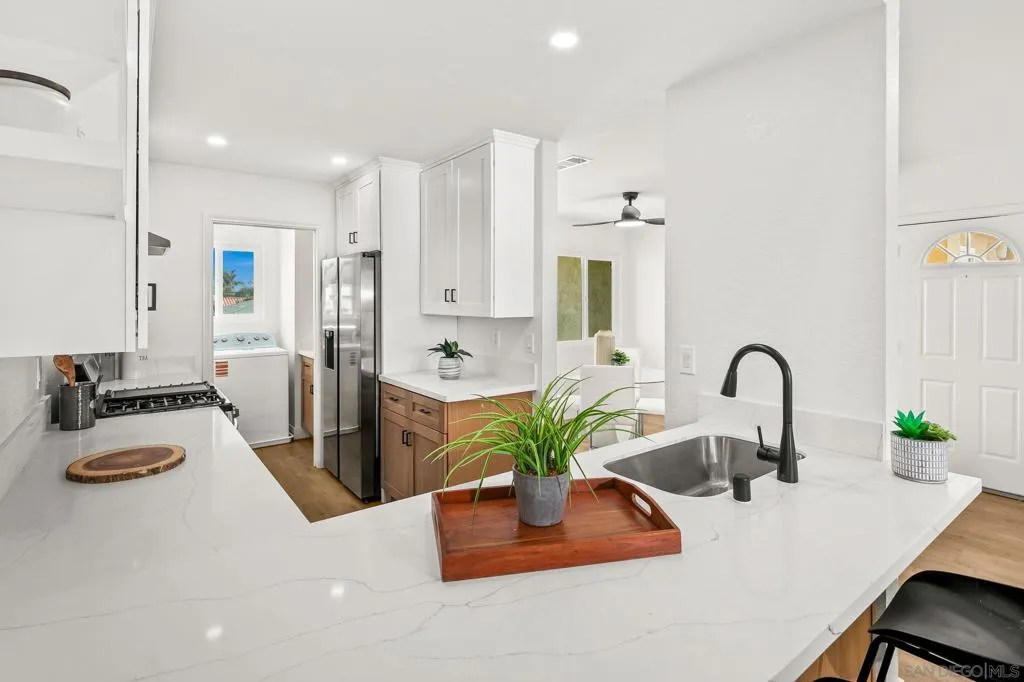 Live the beach-life dream in this turnkey, elevated top-floor coastal retreat just half a block from the Imperial Beach Pier and the sparkling Pacific Ocean. Imperial Beach is one of San Diego’s fastest-growing beach communities. This beautifully renovated 2 bed, 2 bath condo offers the modern luxury style without a hefty price tag. Vaulted ceilings, abundant natural light, and brand-new dual-pane windows create an airy penthouse feel throughout. Every inch has been updated—from the wide-plank LVP flooring to the sleek recessed lighting, giving you a truly move-in-ready home. The designer kitchen features new Samsung stainless steel appliances, custom two-tone cabinetry, and an open layout that flows seamlessly into the living area—perfect for hosting. Both bathrooms have been thoughtfully reimagined with a clean, modern design. Step outside to your private patio or enjoy salty breezes and peek-a-boo views of the ocean and pier from the community terrace and soak in those iconic SoCal sunsets. Additional highlights include: • Full-size in-unit laundry (brand-new) • Two secured garage parking spaces • Low HOA fees • Dedicated storage shed • Walking distance to restaurants, coffee shops, breweries & the beach trail • Quick access to Coronado, the Silver Strand, and downtown San Diego With a prime location, full renovation, and a laid-back beach lifestyle that feels like a vacation every day, this condo is the perfect coastal getaway or full-time residence. Your turnkey beach home is ready to be your primary home, or your second home beach getaway—don’t miss it!