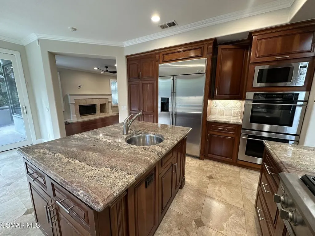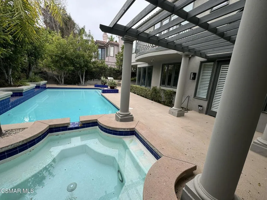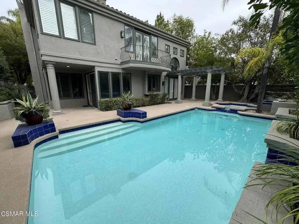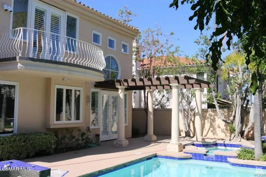Mediterranean style home nestled on a cul-de-sac lot within the 24/7 gated and patrolled Bellagio community. Upgraded and updated by owners in recent weeks. Gourmet cook's kitchen with a center island and breakfast nook, granite counter tops, stainless steel hi-grade appliances. Spacious great room with fireplace and wet bar, large formal living room and spacious formal dining room. Bedroom and en-suite bath down stairs. Roomy laundry room, powder 1/2 bath, direct access 3 car garage round out the lower level. Upstairs are 3 large secondary bedrooms and an oversized full bath plus a spacious primary suite with a spa like bath and large custom closet, Preachers balcony overlooking the entertainers rear yard. Great entertaining home with resort style pool and spa, built in BBQ and covered patio. Only one in the area with private pool and spa. Pool/Spa service included as is the gardener.