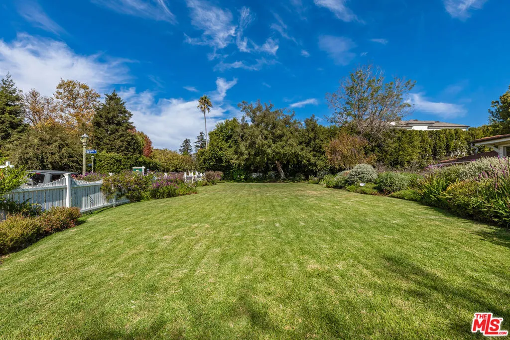 A rare, once-in-a-generation offering on the prestigious San Remo Rim in the Palisades Riviera. Spanning approximately 37,600 square feet, this exceptional property commands sweeping panoramic views from the mountains to the city skyline. The expansive grounds include a full-size tennis court and offer remarkable scale, presence, and opportunity. The existing one-story traditional residence features a welcoming front porch, rolling lawns, and a classic white picket fence thoughtfully positioned to capture the lot's breadth and dramatic rim outlook. An extraordinary opportunity to enjoy the residence as-is, reimagine, or create a significant estate in one of Los Angeles' most sought-after locations. A true legacy offering.